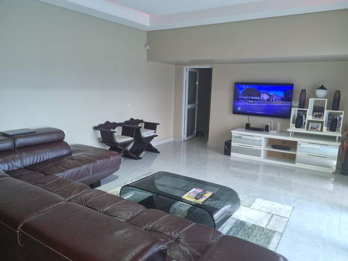 Luxurious home in Nahoon Valley with grand entrance, 5 bedrooms with ensuites, entertainment areas, pool, and top-notch security features.