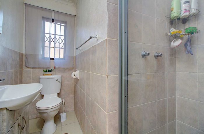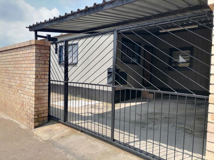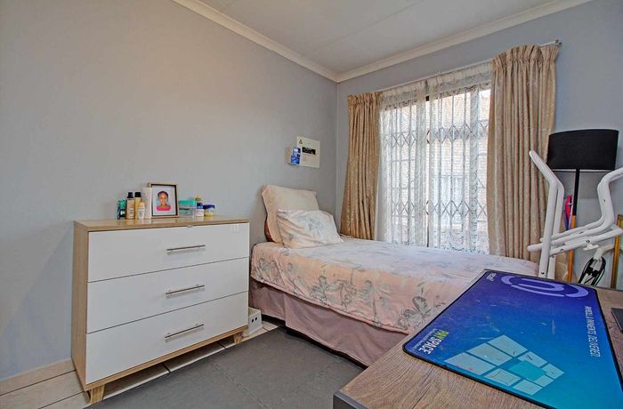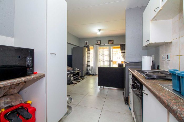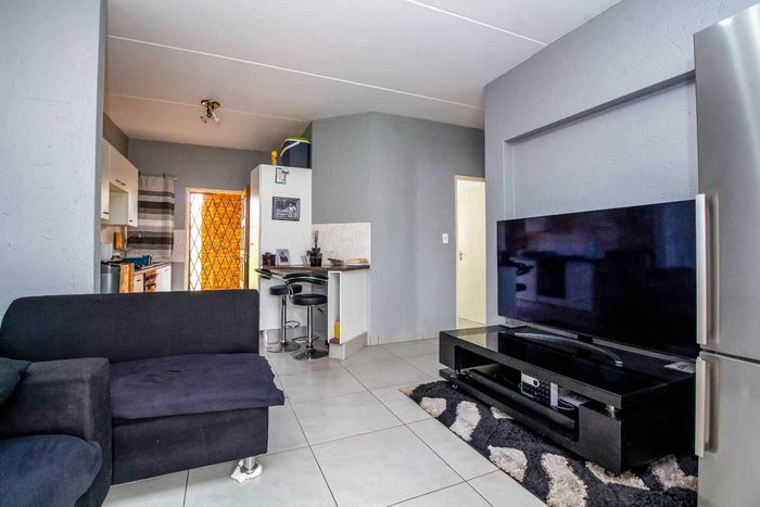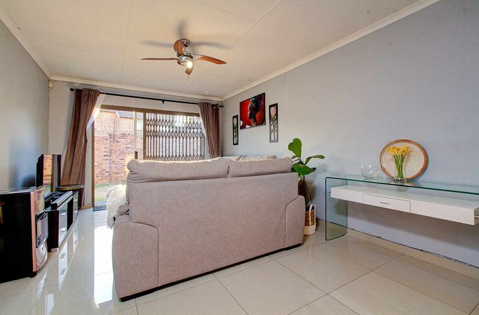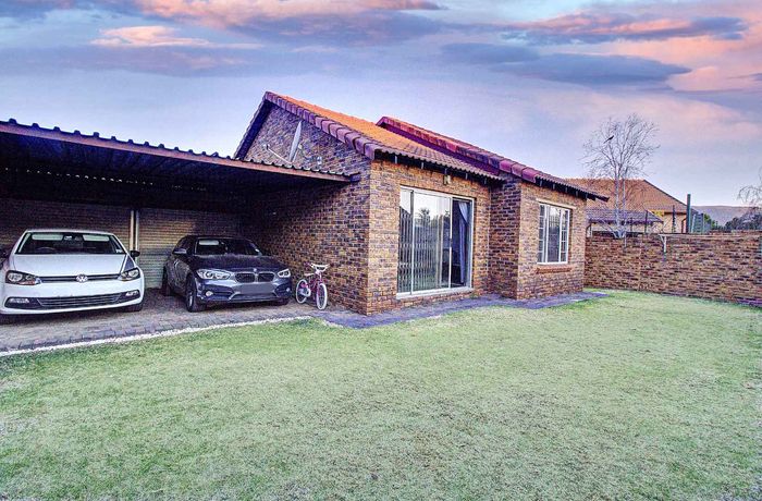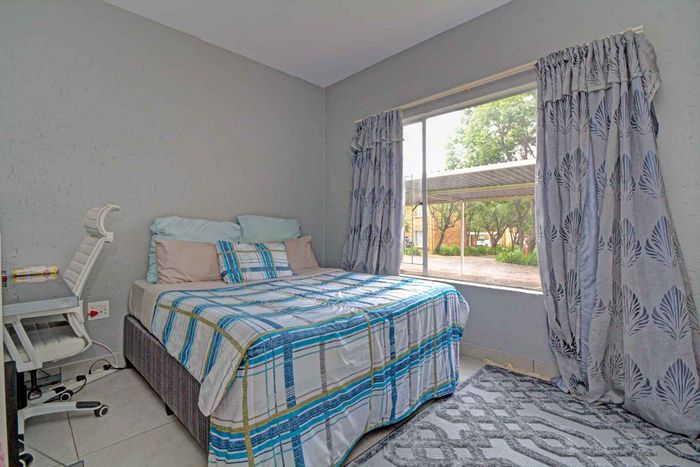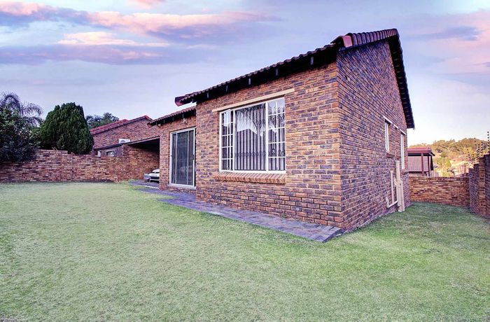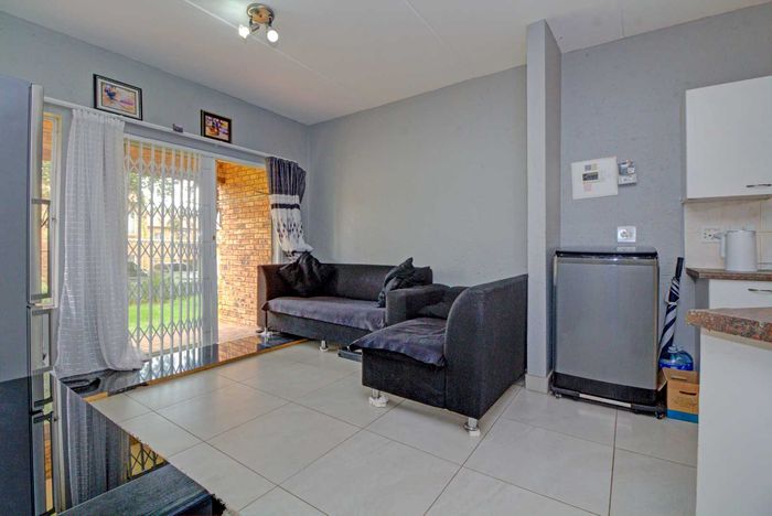 Modern two-bedroom townhouse in Wilgeheuwel, Roodepoort, featuring en-suite, open-plan living, double garage, pet-friendly garden, and low levies.
