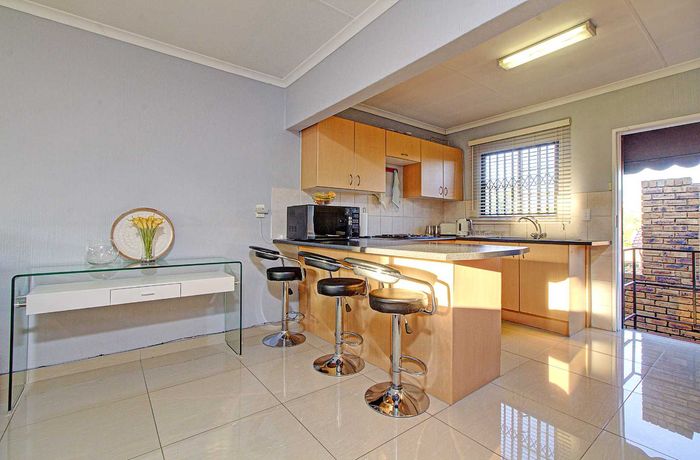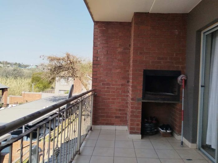 Entertainer's retreat with expansive balcony and built-in braai overlooking pleasant views, moments from shopping, schools and churches — spacious kitchen and lounge, three bedrooms, two bathrooms, garage plus covered parking.