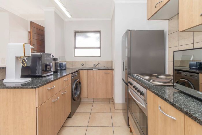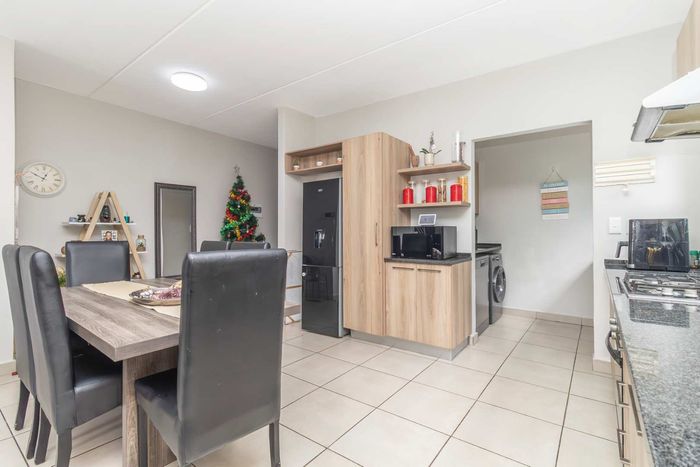 2 bedrooms, 2 bathrooms townhouse in Radiokop, Roodepoort; 66 m² with 2 covered parking bays and garden.