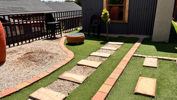 Enjoy community living near Blueberry Shopping Centre in Honeypark, Roodepoort, with a pet-friendly garden and convertible patio, sleek modern kitchen, two bedrooms, one bathroom and covered parking.
