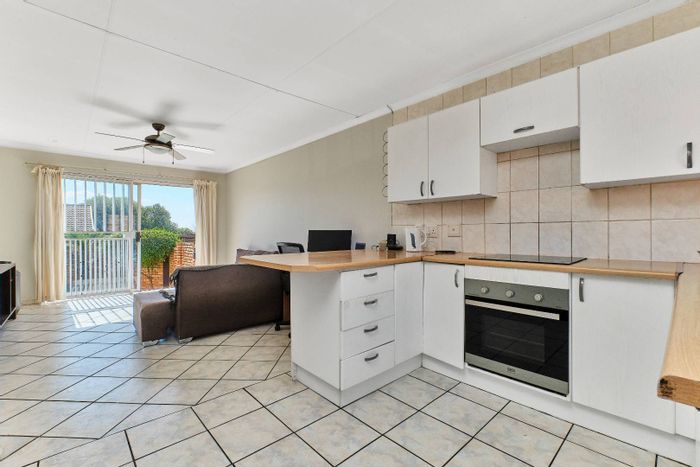 Riverside family living with Rivonia shops, markets and Sandton nearby. Open-plan kitchen flows to a covered patio overlooking a private garden and river; three beds, two baths, secure parking.