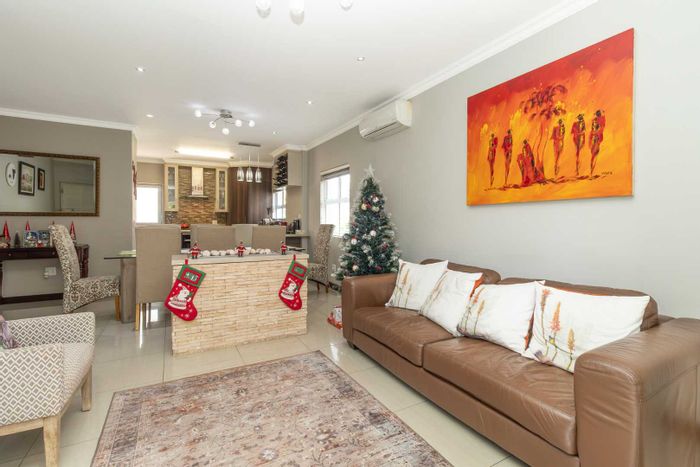 Three-bedroom, three-bathroom home with outdoor patio, double garage, and security in a sought-after complex. Offers from R1 250 000.
