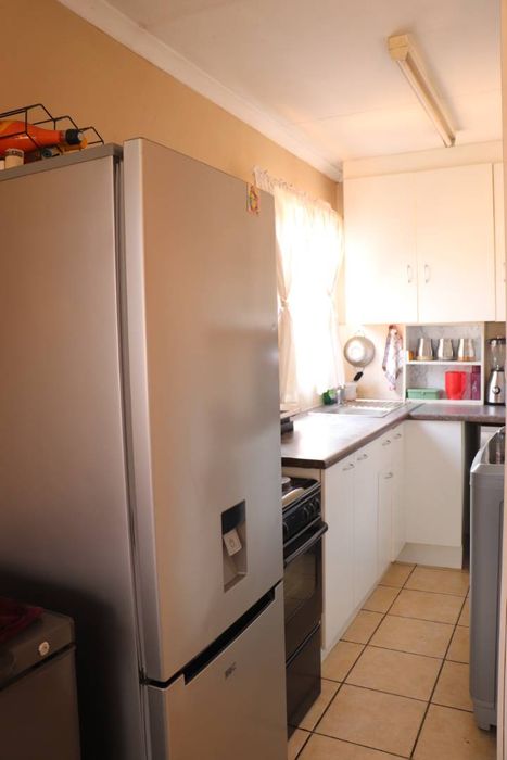 Welcoming family home in a quiet neighbourhood, featuring a cozy braai room, solar system, flowing living/kitchen, 3 beds, 2 baths, lockup garage plus parking for three.