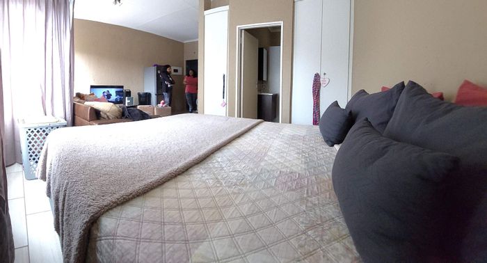 Modern two-bedroom townhouse in Wilgeheuwel, Roodepoort, featuring en-suite, open-plan living, double garage, pet-friendly garden, and low levies.