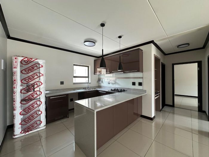 Perfect family-and-pet haven in a secure complex with 24-hour security, featuring an open-plan kitchen flowing to a covered patio and wrap-around garden; 3 beds, 2 baths, double automated garage.