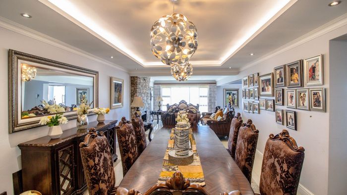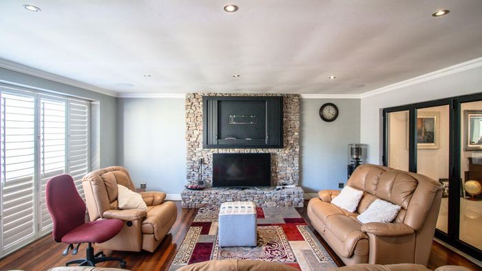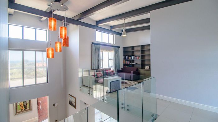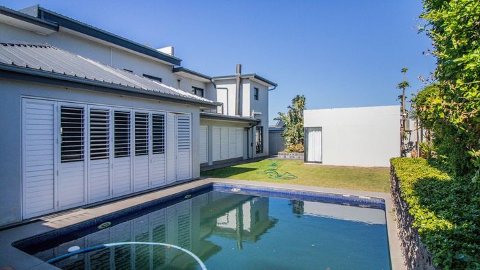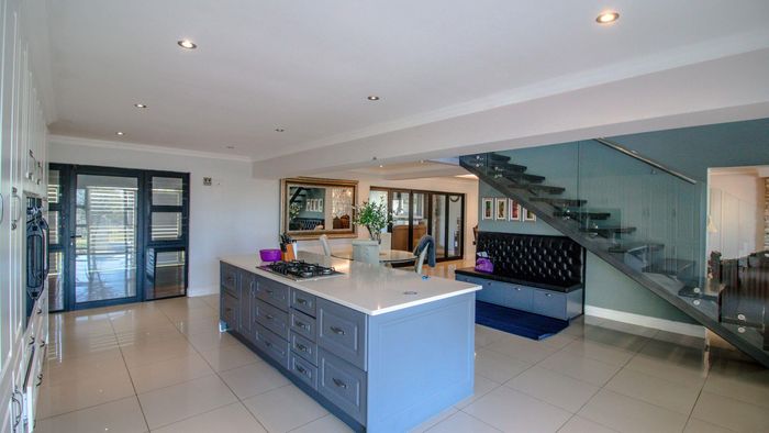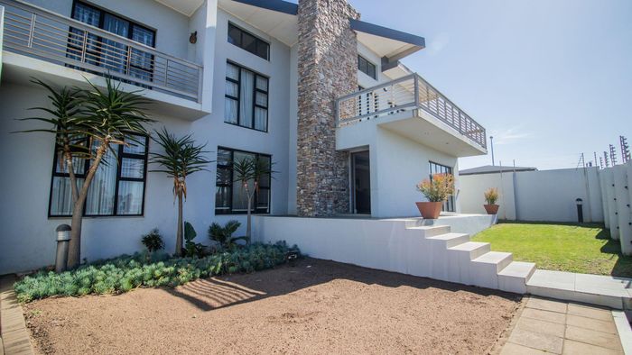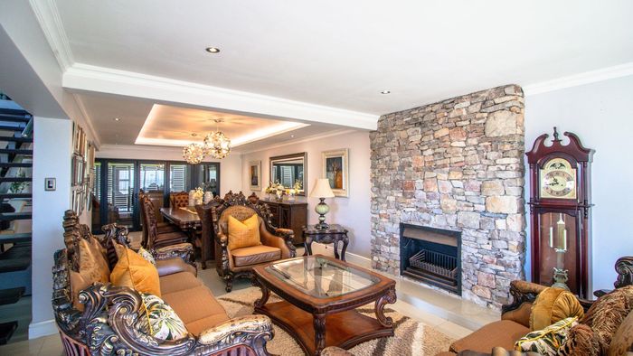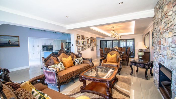 Coastal luxury living with panoramic sea views, grand staircase, and private soundproof cinema or band room — plus an entertainer’s bar/braai area, sleek kitchen and double garage.