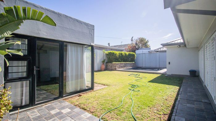 Private garden oasis with large pool and covered patio, open-plan living and kitchen with scullery; conveniently close to amenities. Includes three bedrooms, two bathrooms and double tandem lock-up garage.