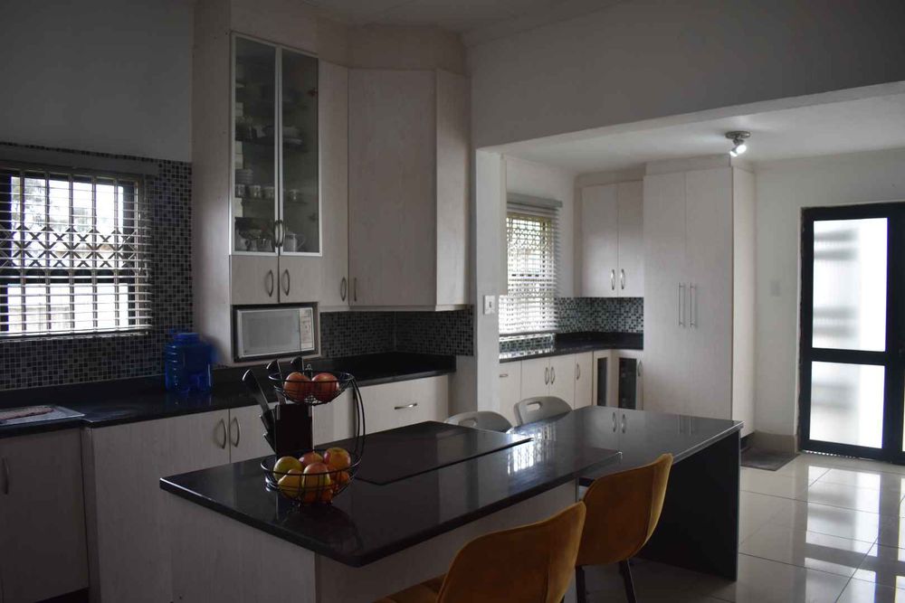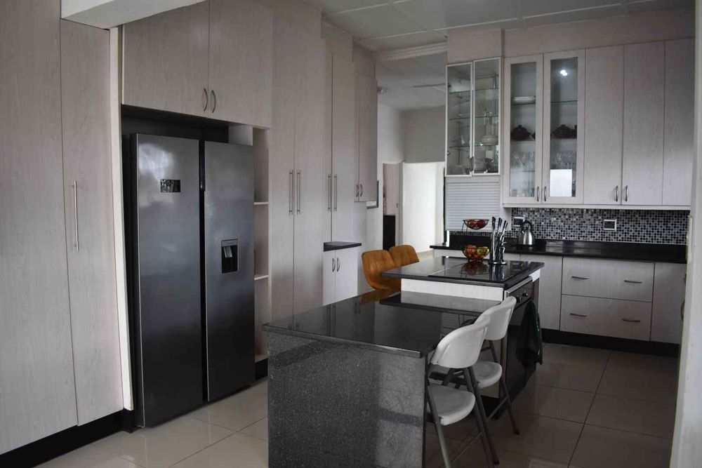 The main home: This gorgeous home offers a entrance hall, spacious open plan lounge\dinningroom & stunning large kitchen with loads of storage space & granite tops. Down the passage way you will find 4 luxury size bedrooms with built in cupboards,Main bedroom with lots of packing space & walkin en suite & sparkling guest bathroom for visitors. There is also secure onsite parking for 8 vechiles & double remote garage with tiled floors.