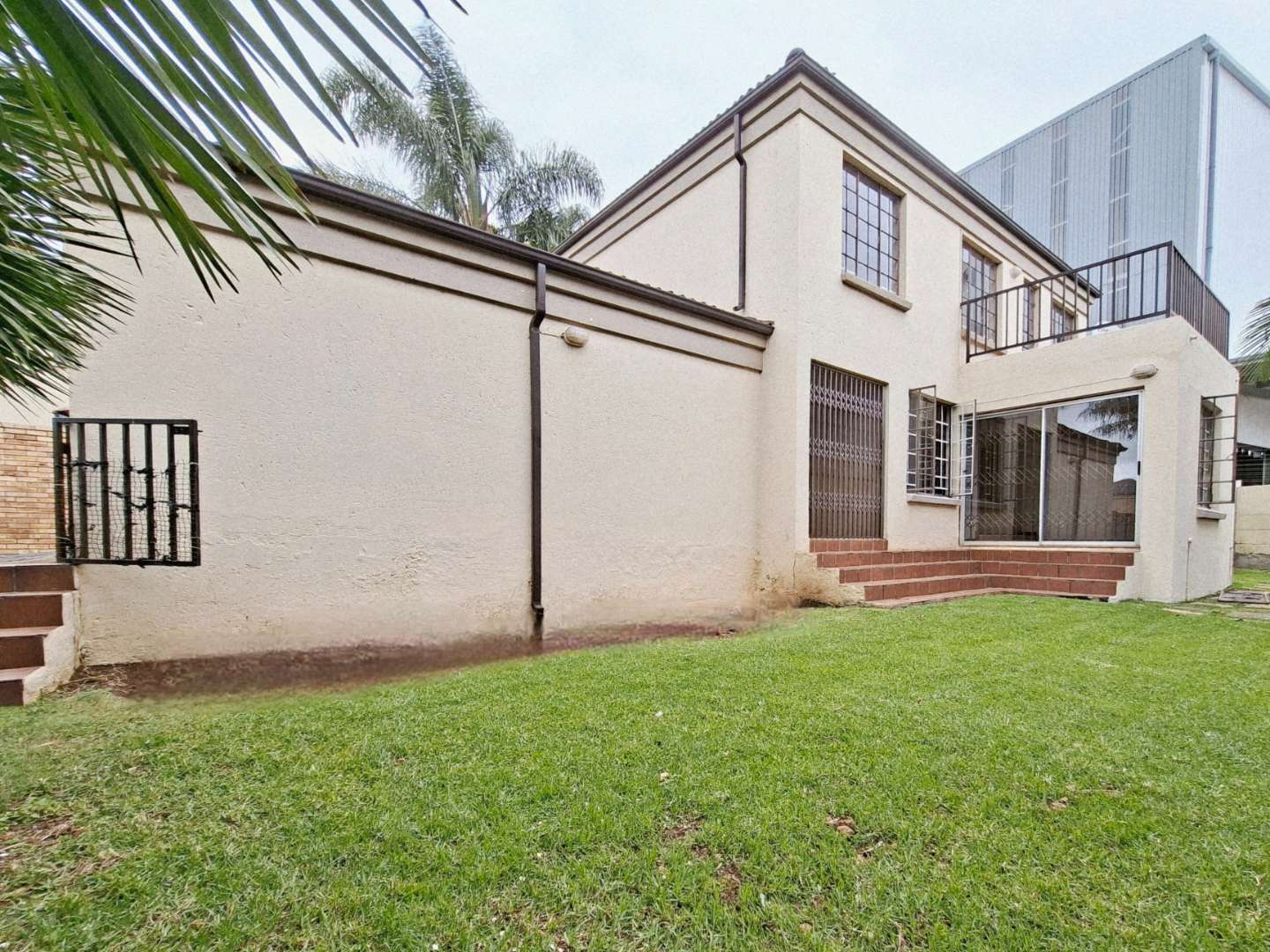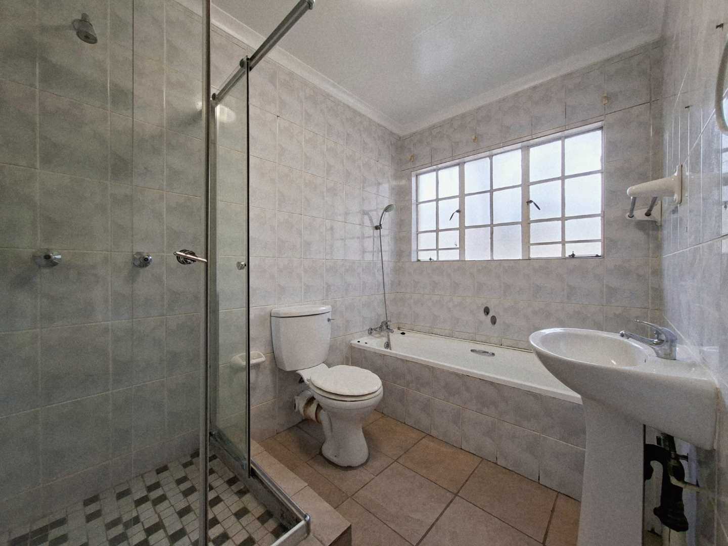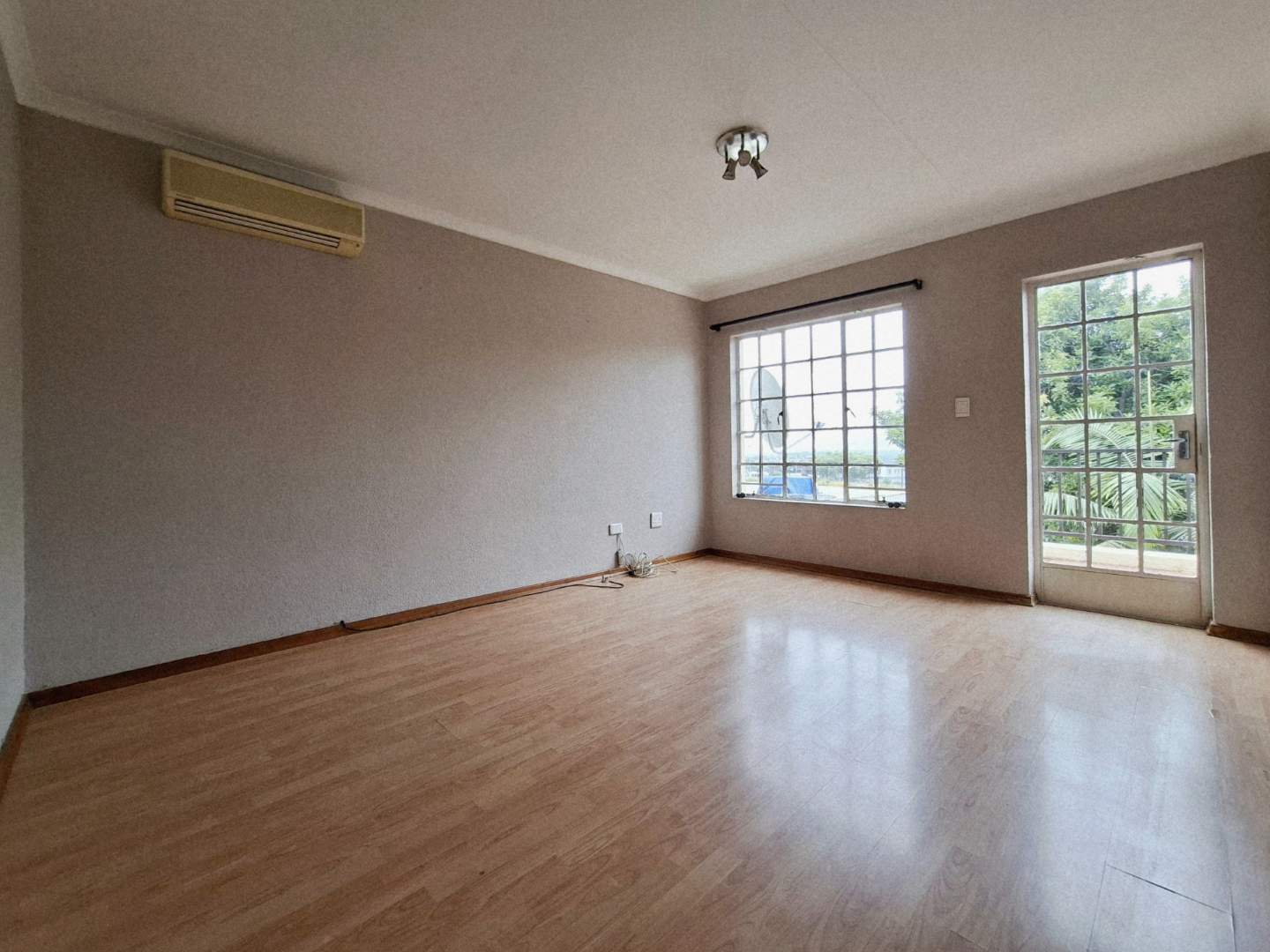 Upstairs, the sleeping quarters open onto a spacious landing area that provides access to three generously sized bedrooms, all featuring elegant laminated flooring. The main en-suite bedroom is a true retreat, boasting built-in mirror cupboards and a private balcony with views as far as the eye can see—perfect for enjoying a relaxing sundowner. The en-suite bathroom is tastefully tiled and equipped with both a corner bath and shower. The second and third bedrooms are also well-appointed with built-in cupboards and can comfortably accommodate double or queen-sized beds. A second bathroom, complete with a bath and shower, serves as a shared space for these bedrooms.