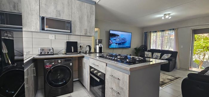 Low-maintenance Radiokop living with a private garden retreat and communal pool, plus a brand-new modern kitchen. Steps from shops and Wilgeheuwel Hospital. Two bedrooms, one bath, covered parking.