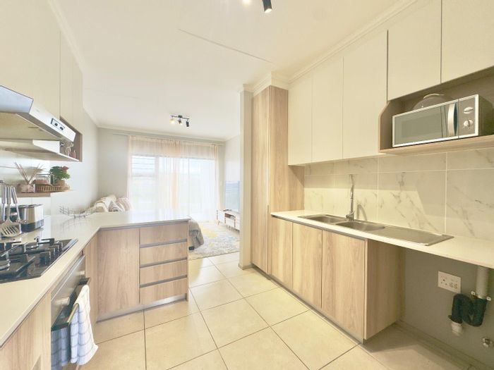 Effortless contemporary living with morning coffee on a private patio and scenic views, moments from Mall of Africa and Kyalami Corner. Two bedrooms, two bathrooms, and covered parking.