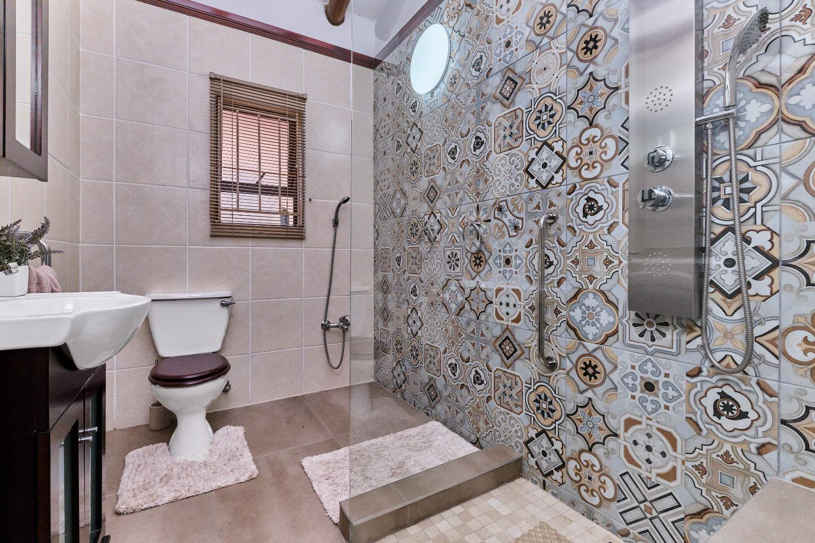 The modern kitchen boasts granite countertops, ample cupboard space, an Elba stove (gas with an electric oven), space for 1 under-counter appliance, a double-door fridge/freezer, and a walk-in pantry. A separate laundry adds convenience and functionality.