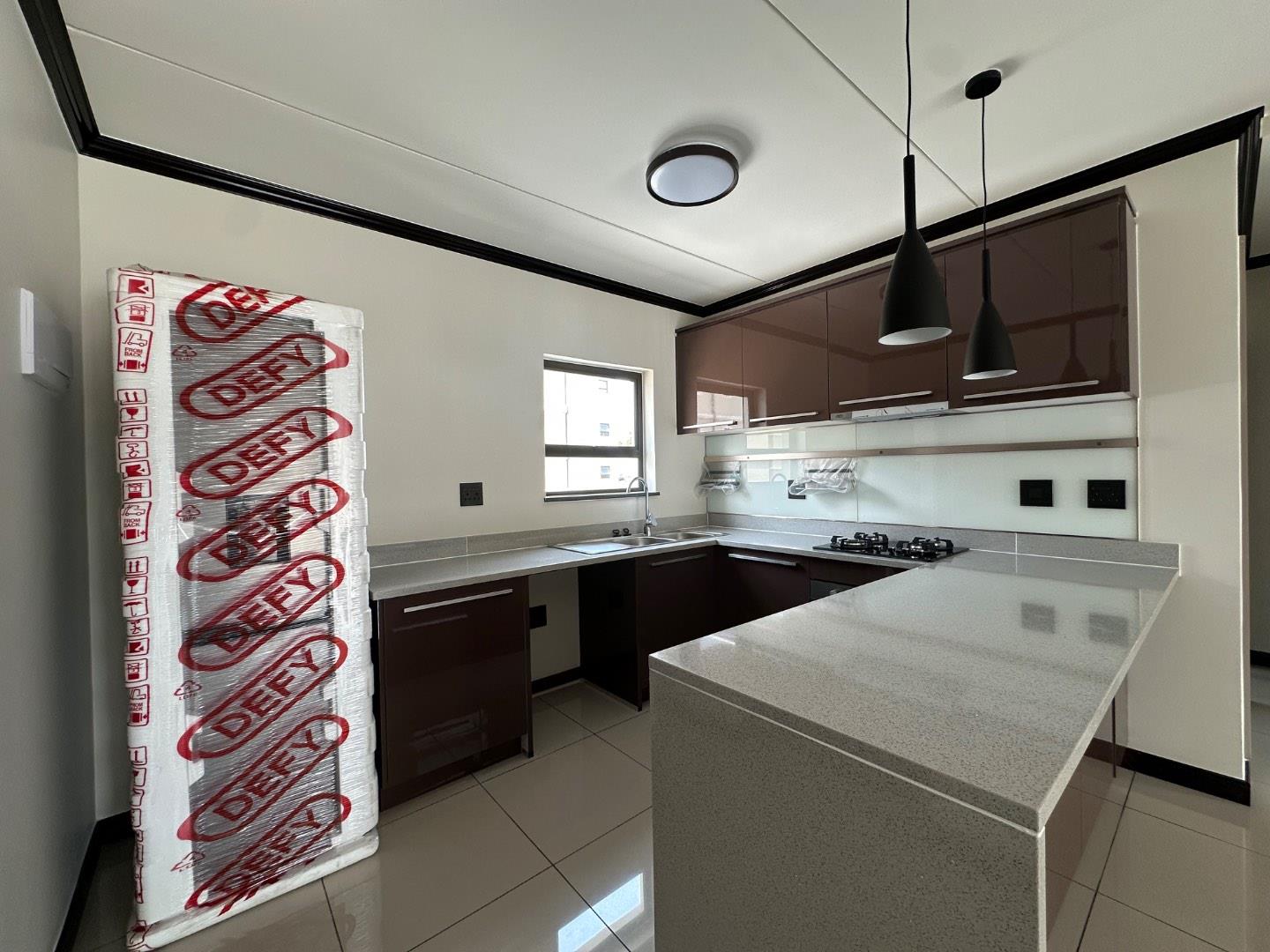 This brand new apartment offers modern, stylish living in a secure estate. The open-plan kitchen features sleek gloss cupboards, stone countertops, a central island, and a gas hob, flowing into a bright living area with contemporary finishes.