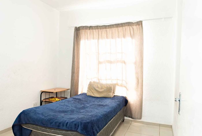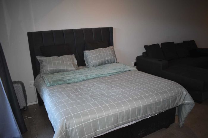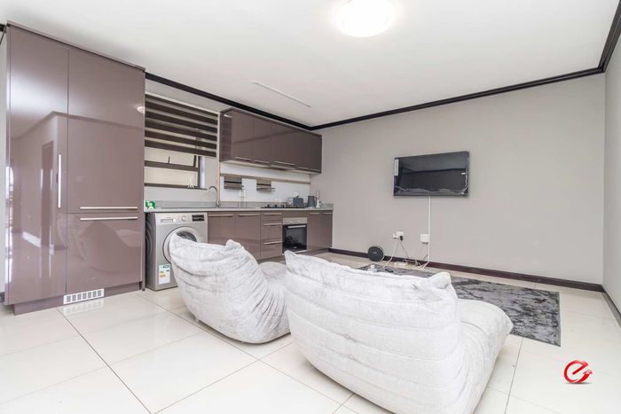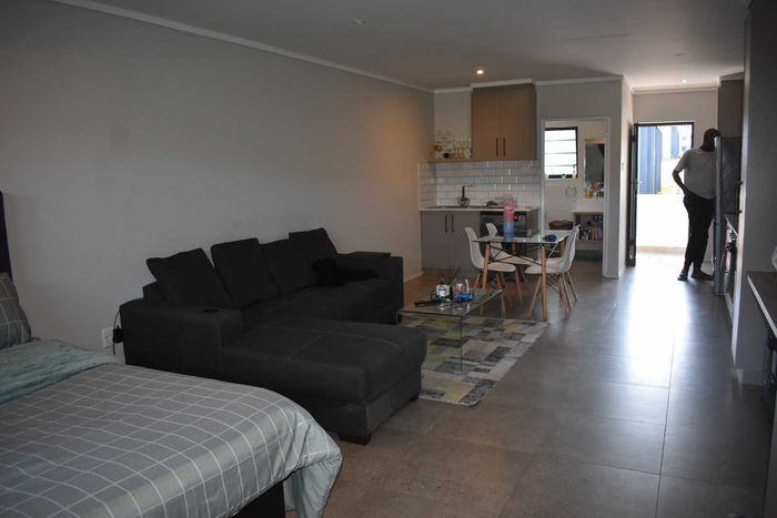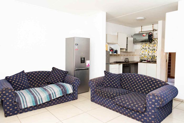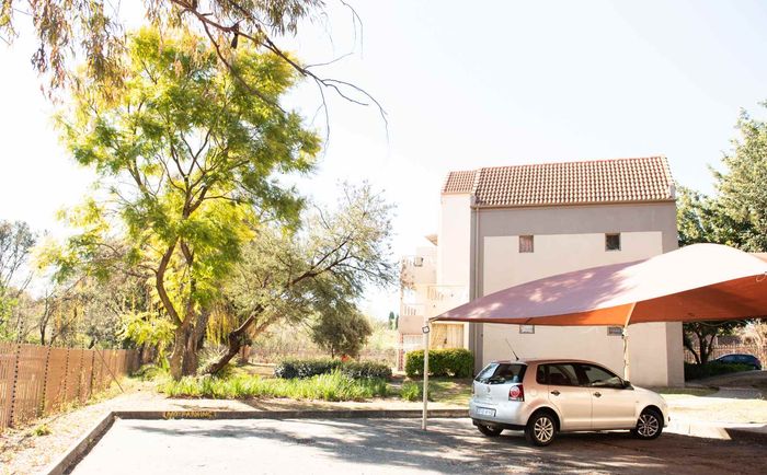 Low-maintenance, travel-friendly living in Palm View Estate near Lanseria Airport and amenities, featuring an open-plan layout and private balcony; one bedroom, one bath and covered parking.