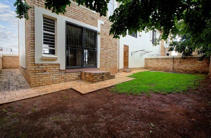 Duplex townhouse in Radiokop: 3 bedrooms, 2.5 bathrooms, 122 sqm, garage, carport, and pet-friendly gardens.