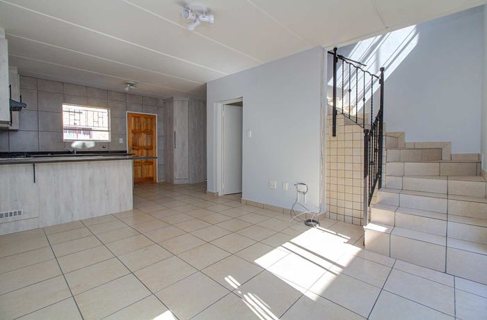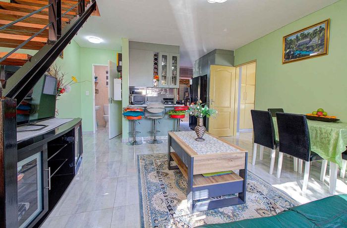 Spacious townhouse with three bedrooms, open-plan living, large garden, and versatile room. Offers from R 1,699,000.