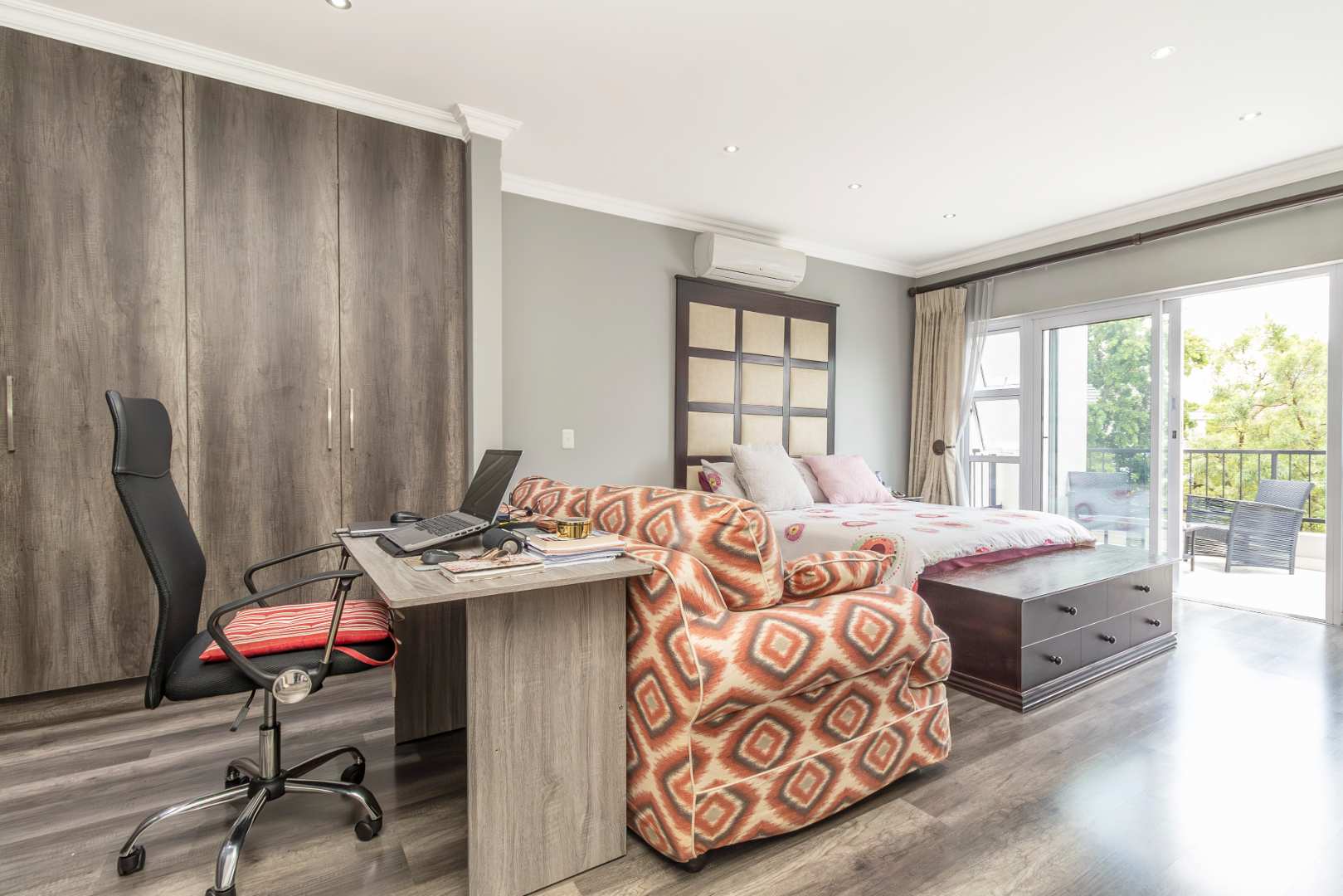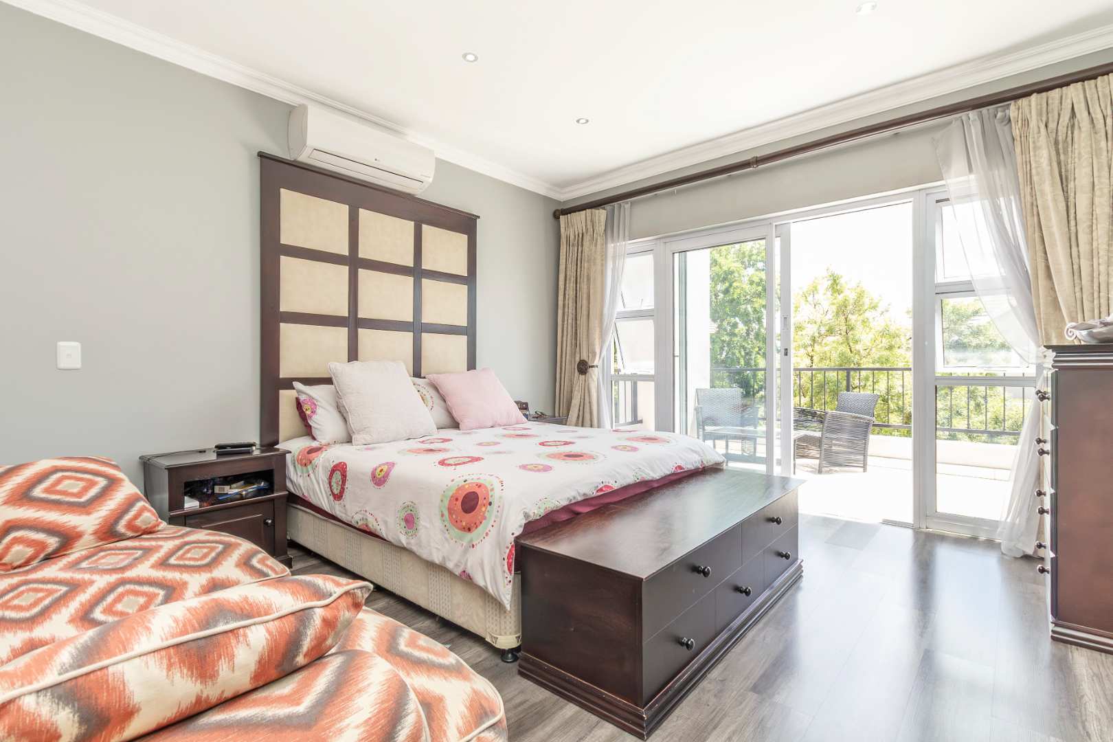 Upstairs, you will find three spacious bedrooms, each designed with comfort and style in mind. Two of the bedrooms open onto a private balcony, offering a serene space to enjoy your morning coffee or unwind after a long day. The upper level also features a cozy pajama lounge and two full bathrooms, ensuring ample space for family and guests.