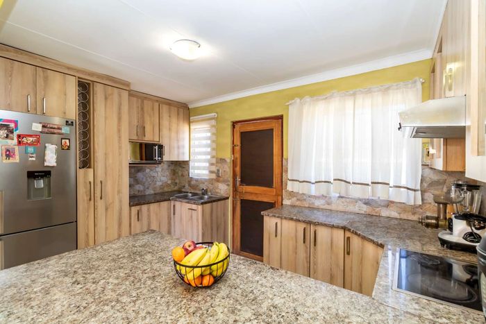 The main house features an open-plan dining area seamlessly connected to a kitchen equipped with fitted cupboards. It comprises two bedrooms, each with fitted wardrobes, and a well-appointed bathroom with a tub. This unit currently generates R5,000 per month.