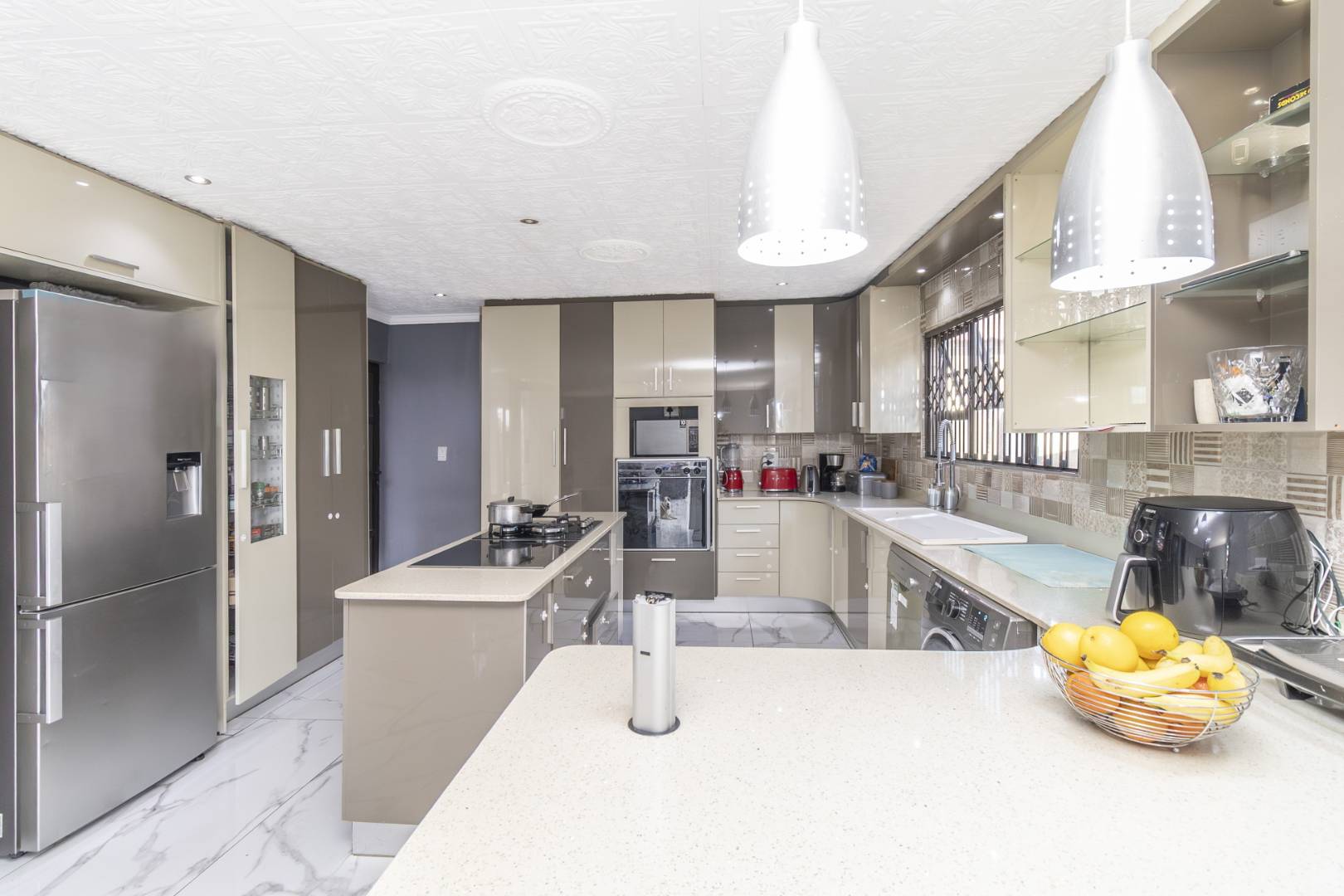 The exterior of this property is just as impressive. The fully paved yard is enhanced with a 5KVA solar system, ensuring energy efficiency and sustainability. Security is paramount, with features including cameras, an electric fence, and an automated gate for peace of mind. A double automated garage provides convenience and ample storage space. Additionally, a Jojo tank ensures you are well-prepared for any water needs.