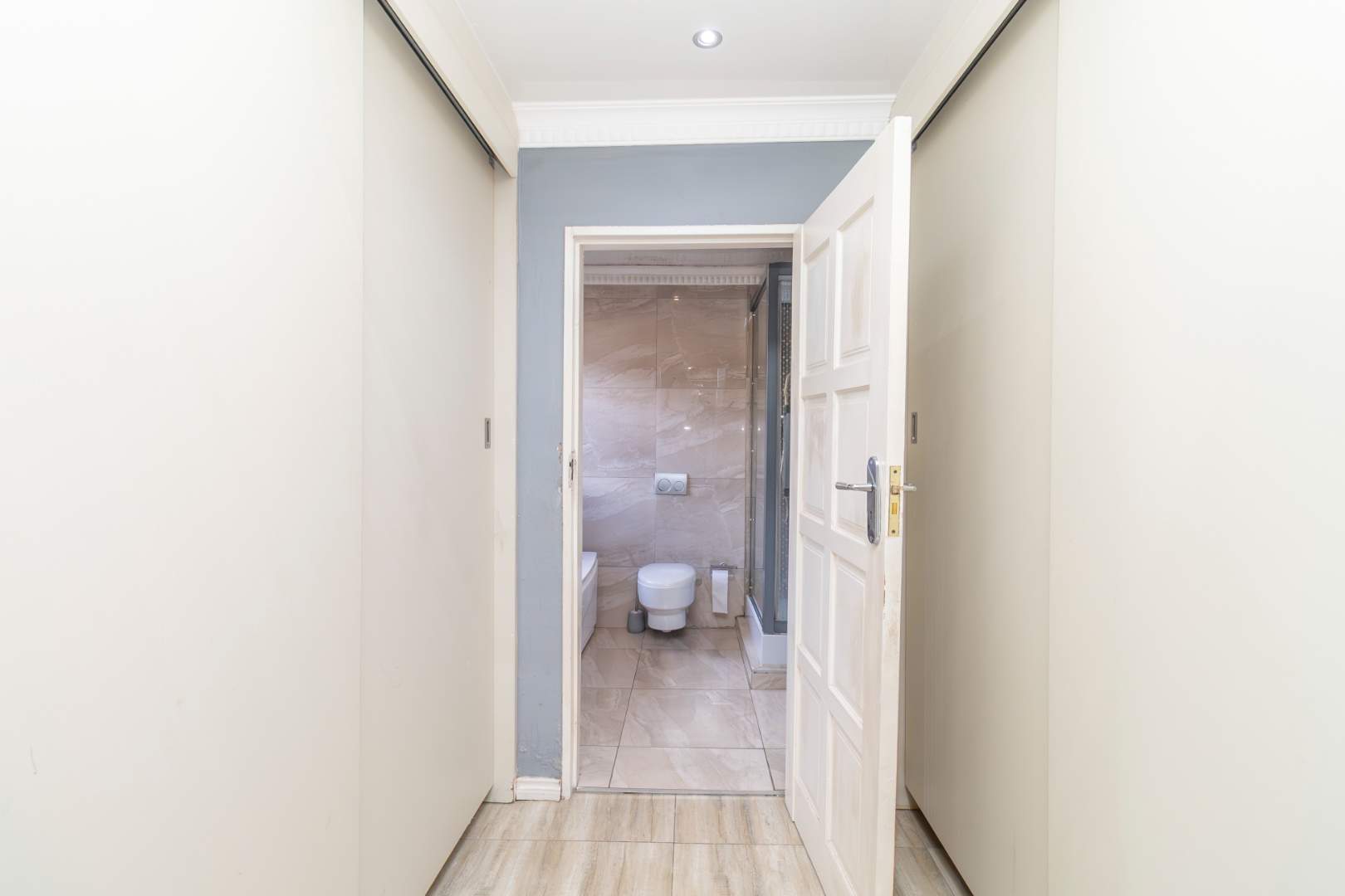 The main bedroom is a spacious sanctuary, capable of accommodating two king-size beds. It features an ensuite bathroom equipped with a tub, toilet, and shower, as well as a walk-in closet designed for both him and her. The additional two bedrooms are generously sized, each fitting two queen-size beds and offering wall-to-wall wardrobes. These bedrooms share a well-appointed bathroom with a tub and toilet.
