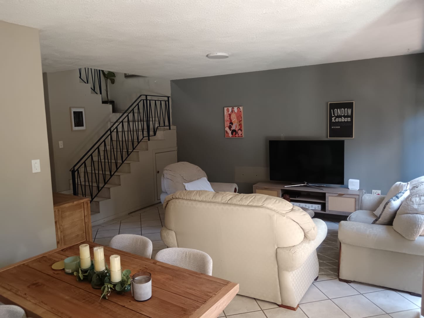 Upon entering, you are greeted by a spacious and inviting open-plan dining and lounge area. The kitchen is well-equipped with fitted cupboards, providing ample storage space, and features a dedicated space for an under-counter appliance, ensuring functionality and ease of use.