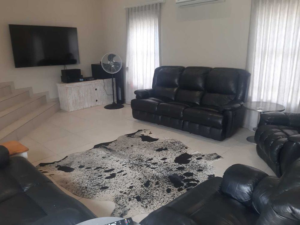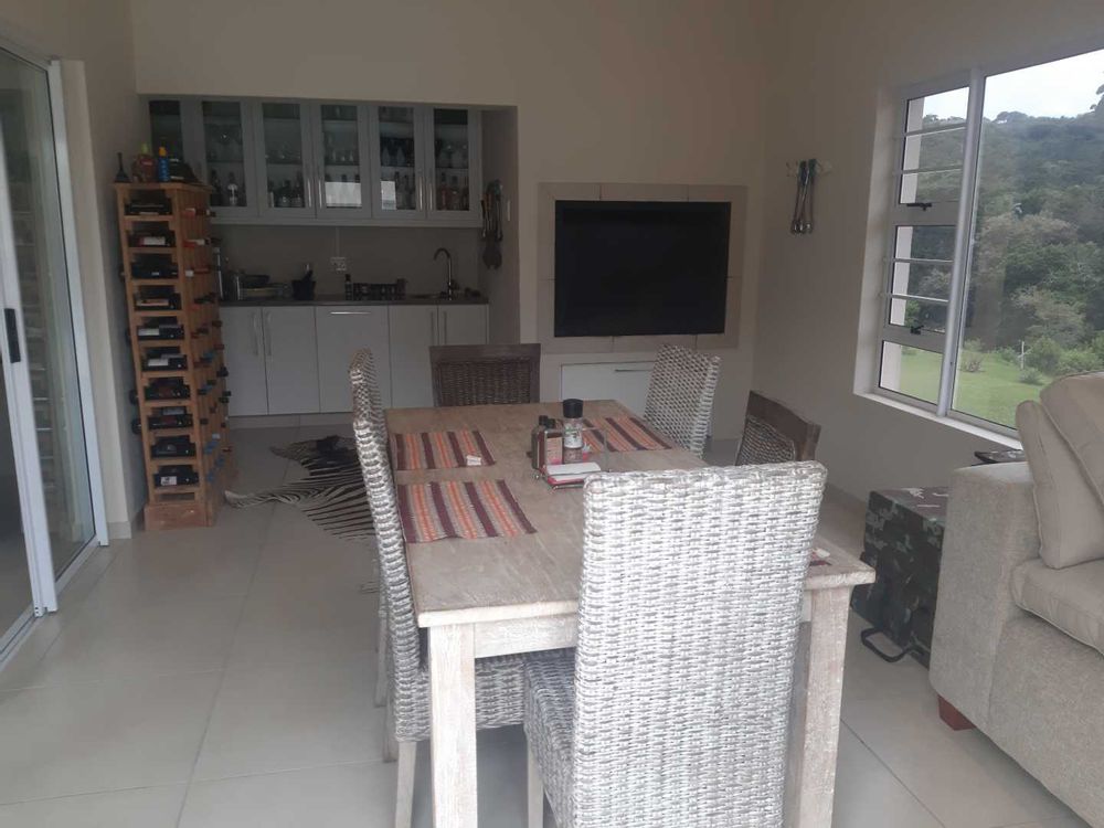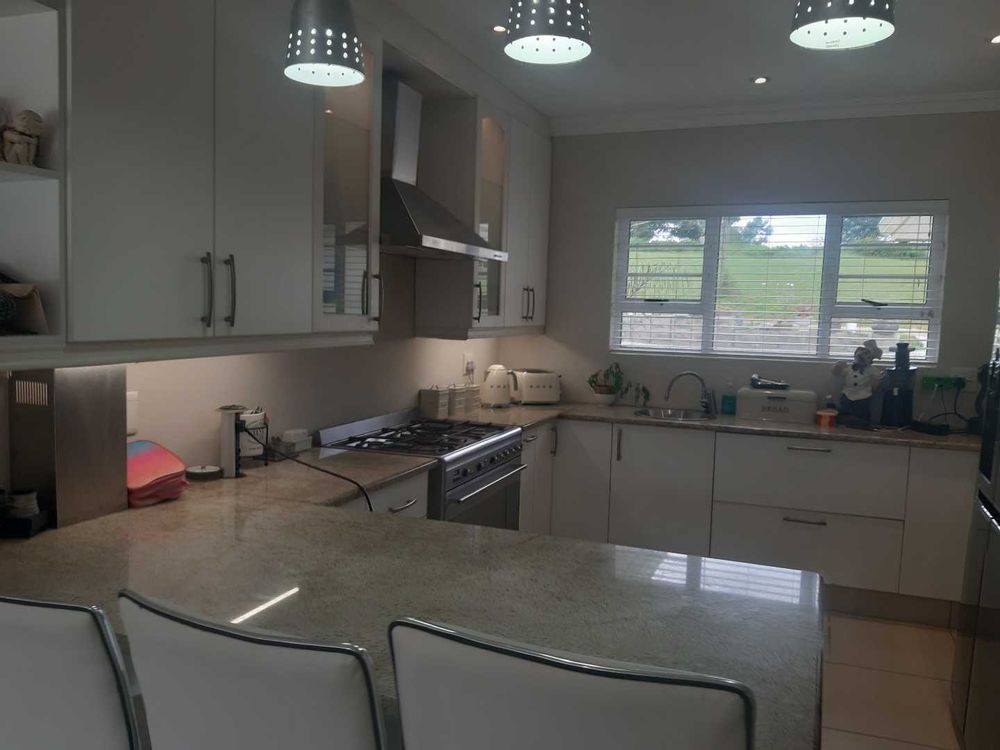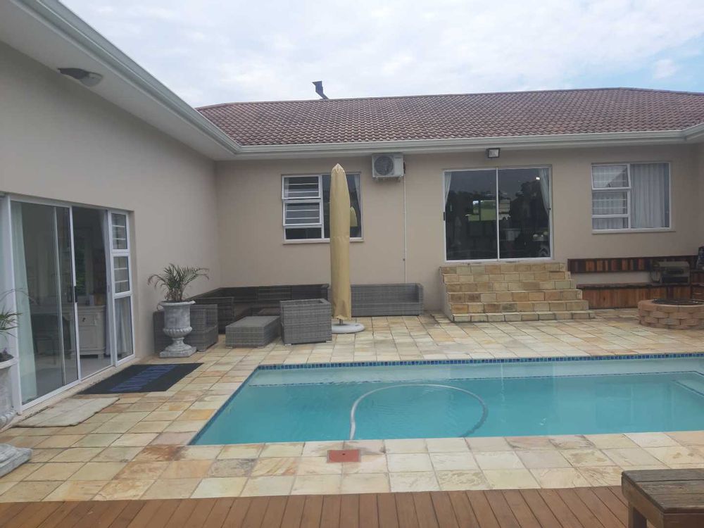 Enter this exquisite home where you will find everything of the very best. Boasting a spacious modern kitchen with separate scullery\laundry, bright dining area with stack doors opening onto a secluded balcony & sparkling pool,3 gracious living-rooms,man cave with kitchenette, built-in braai \bar & dinning area overlooking the pool,4 luxury size guest bedrooms (one with en suite) & spacious full guest bathroom, down the passage leads you to the quiet separate master bedroom with sparkling en suite & dressing room. There is also a domestic room,8 solar panels with inverter,generator,30 000L water tanks with filter system,Borehole,alarm,beams camera & not forgetting small river & avo trees with manicured lawns.
