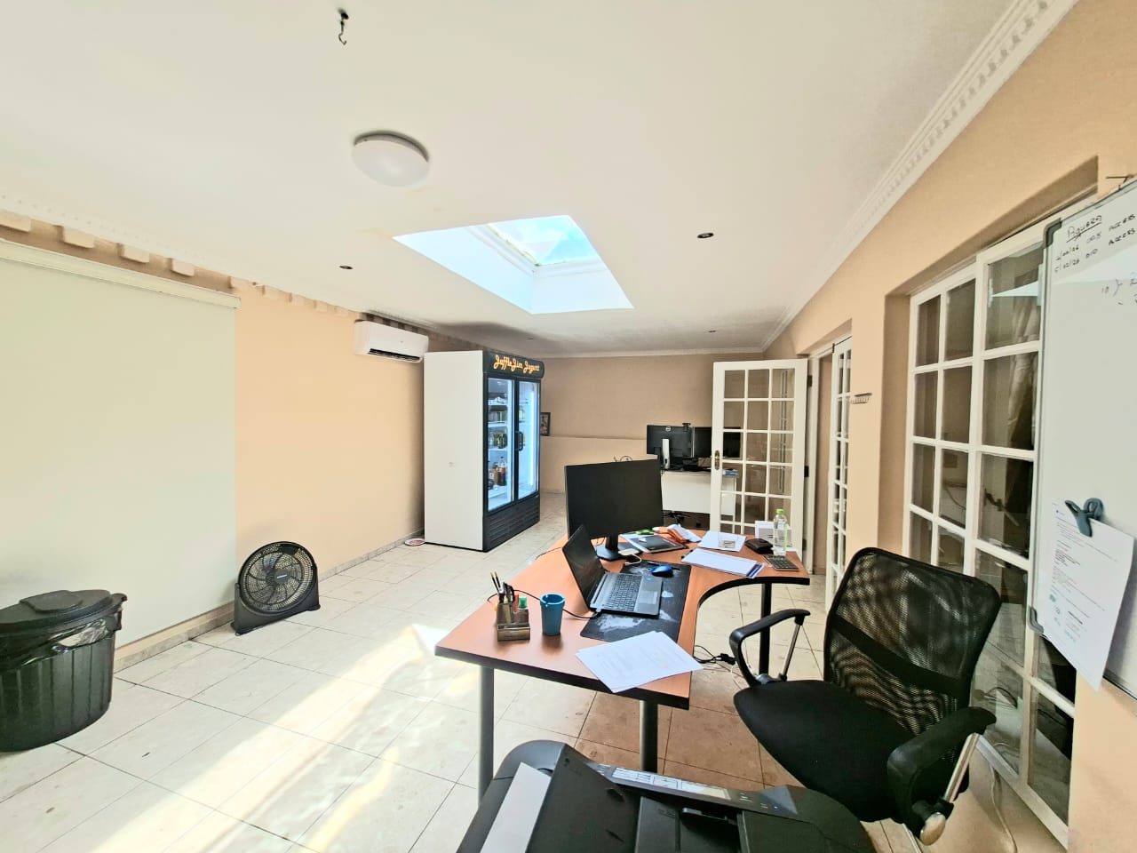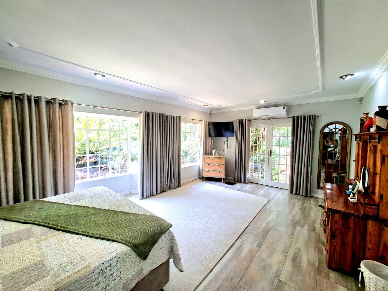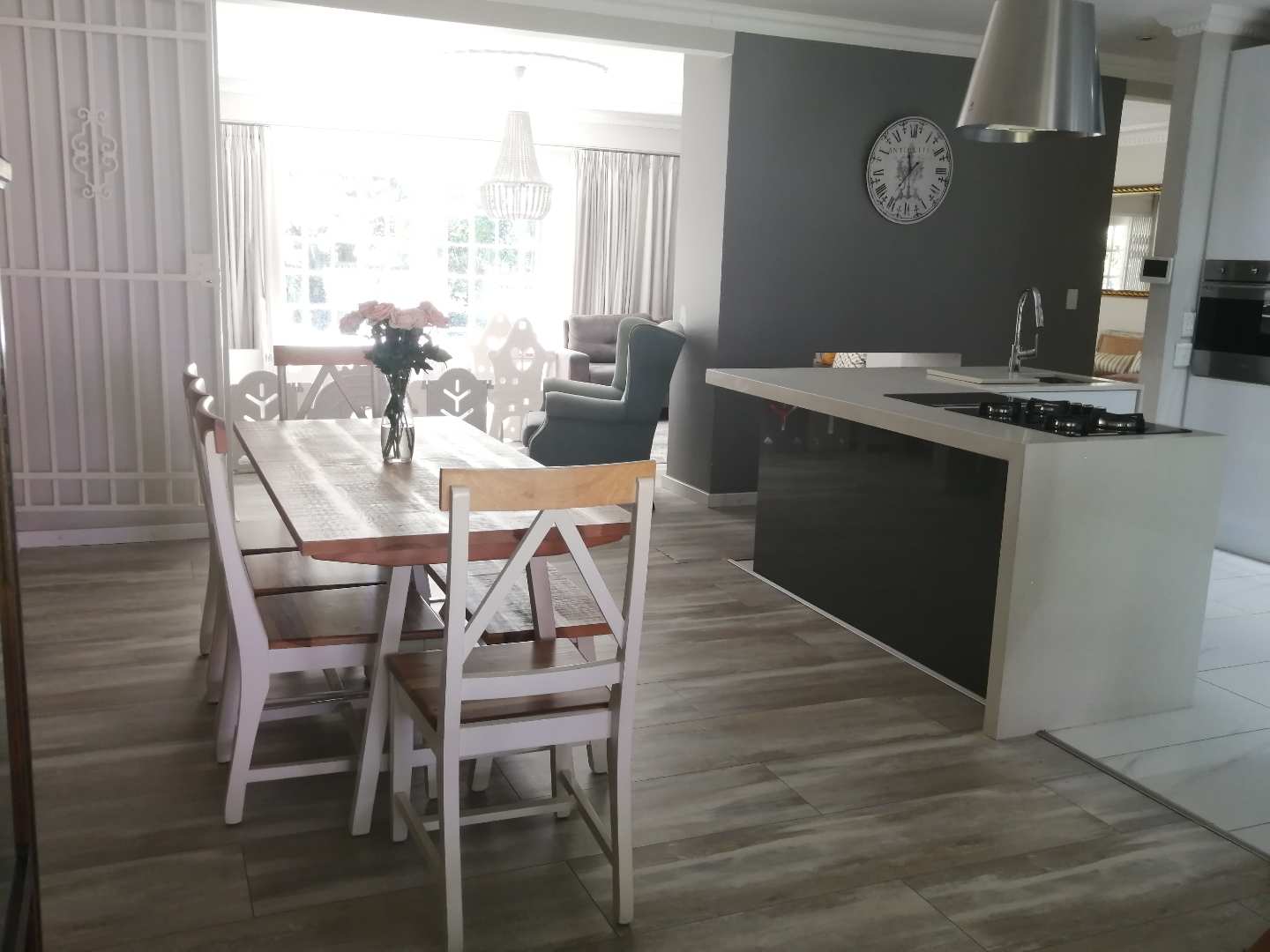 Open plan dining room and living areas, lounge and TV room opening up to the covered patio and overlooking the huge garden and large pool with a covered big lapa.