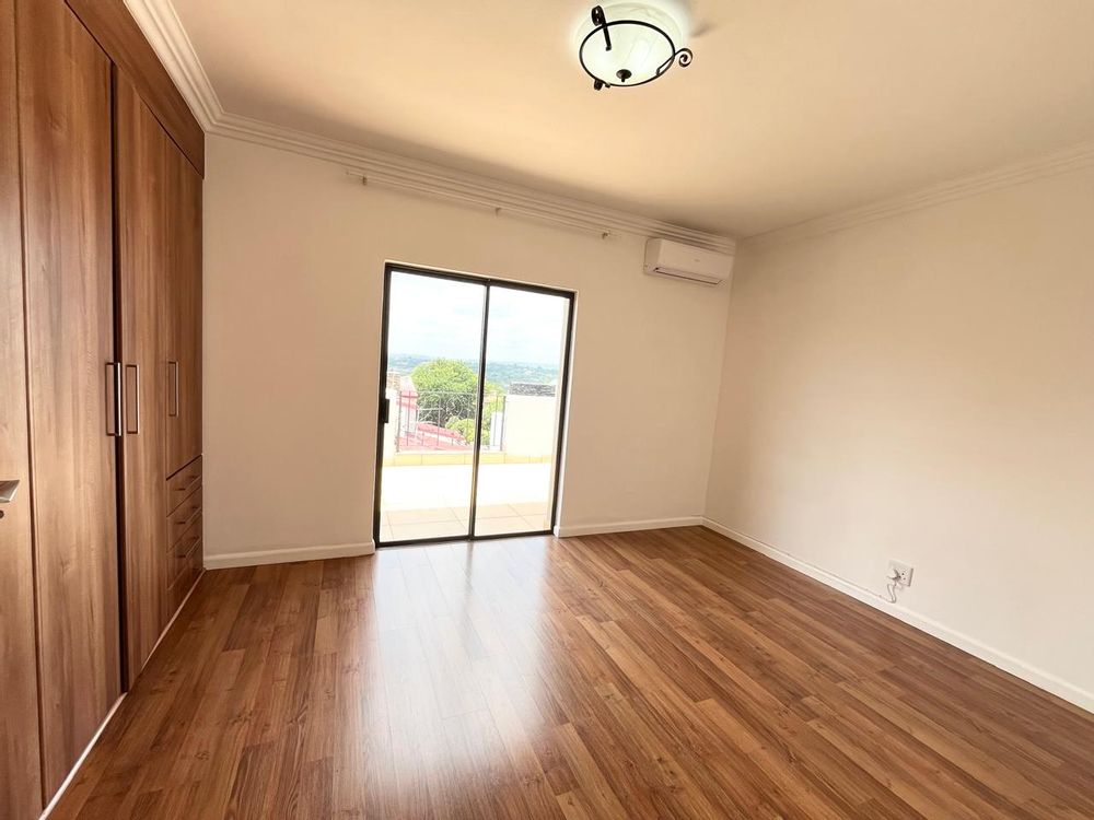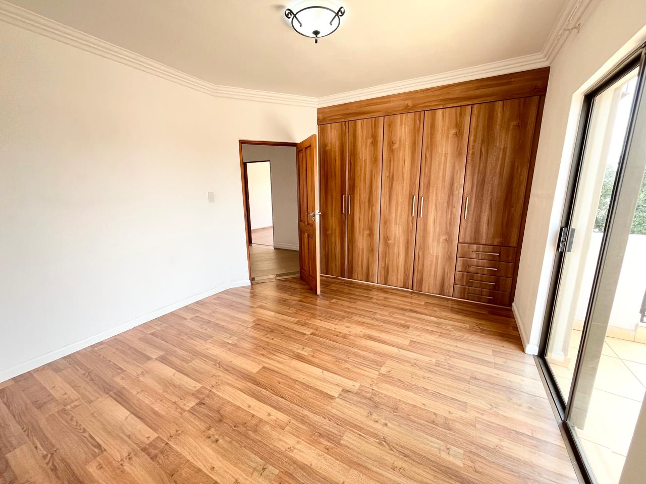The main bedroom serves as a luxurious retreat, complete with ample cupboard space and an exquisite en suite bathroom. A separate full bathroom caters to the other bedrooms, each of which opens onto its own private patio.