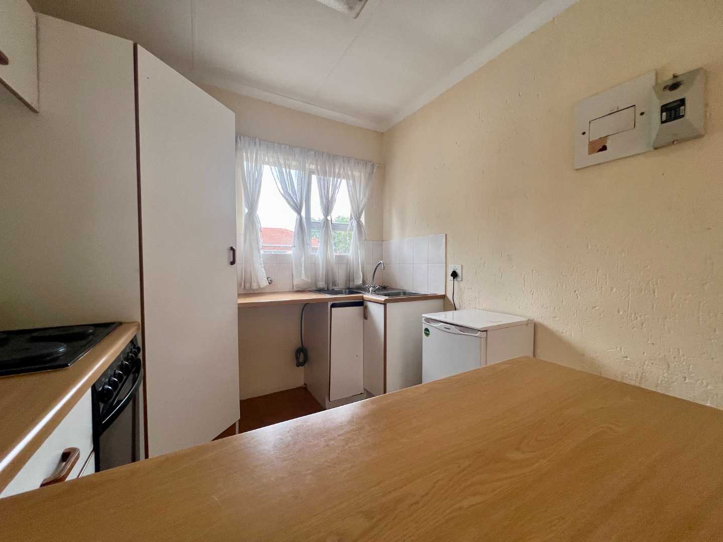 A welcoming entrance opens into a light and bright open-plan lounge with space for a small dining area . The open plan kitchen is well designed to take maximum advantance of space and has ample cupboards with space for one wet appliance and fridge and has an electric stove/ oven combination.