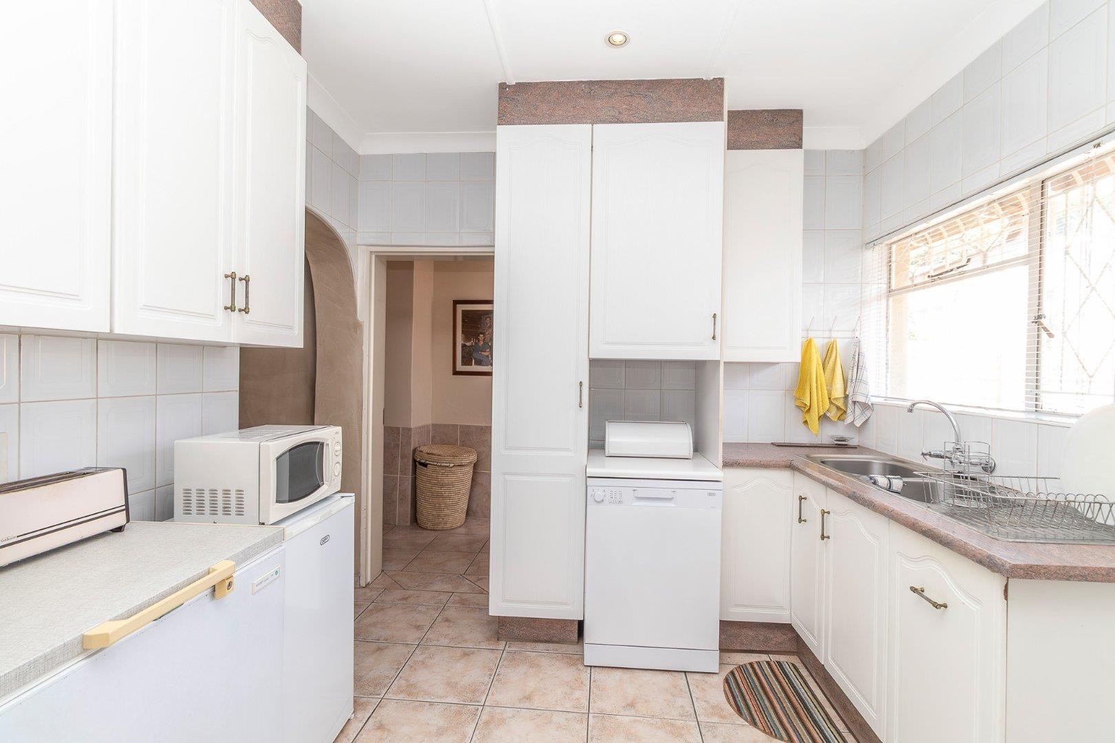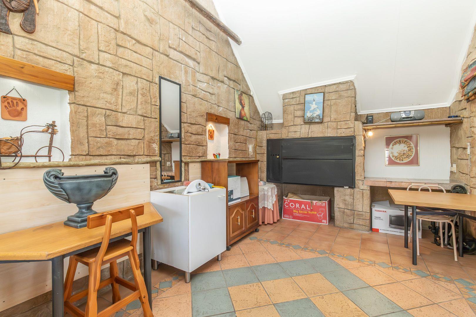 This Beautiful maintained property offer space, comfort and incredible investment potential. Set in a lush, well-kept garden, the home features a sparkling swimming pool and an inviting Lapa area – complete with a spacious entertainment lounge, a separate kitchenette, and a large build –in braai...perfect for hosting guests or relaxing with family and friends. The property boasts 7 generously sized bedrooms, each with its own en-suite bathroom and kitchenette, making it perfectly suited for guesthouse or B&B use. Inside, you’ll find a spacious lounge and dining area, along with a well-designed kitchen offering ample cupboard space. Additional features include a separate laundry room and multiple storage rooms, adding to the practicality of this exceptional home. One single garage with ample visitor’s parking. A rare opportunity to own a versatile property with both lifestyle and income-generating potential. Close to all amenities and shopping malls. Contact me for a private viewing.