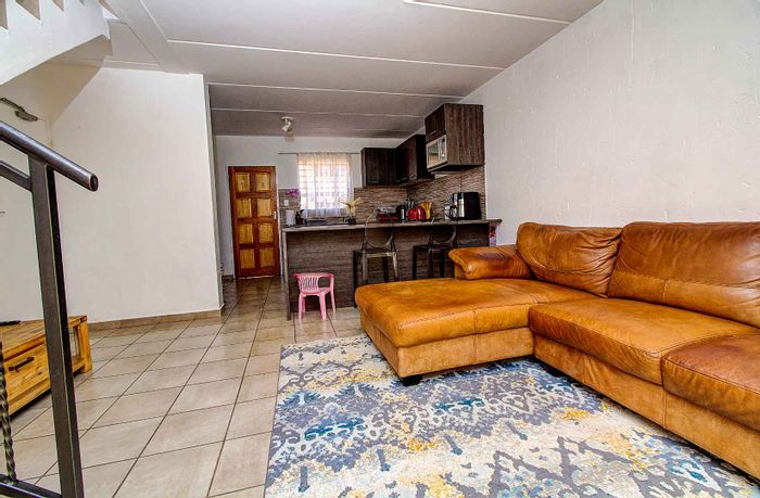 Family-focused living in Little Falls, Roodepoort with mountain views, walking distance to Trinity and Curo schools; open-plan living flows onto a private garden. Two bedrooms, one bath, covered parking.