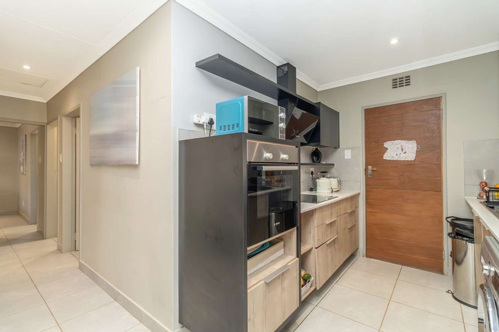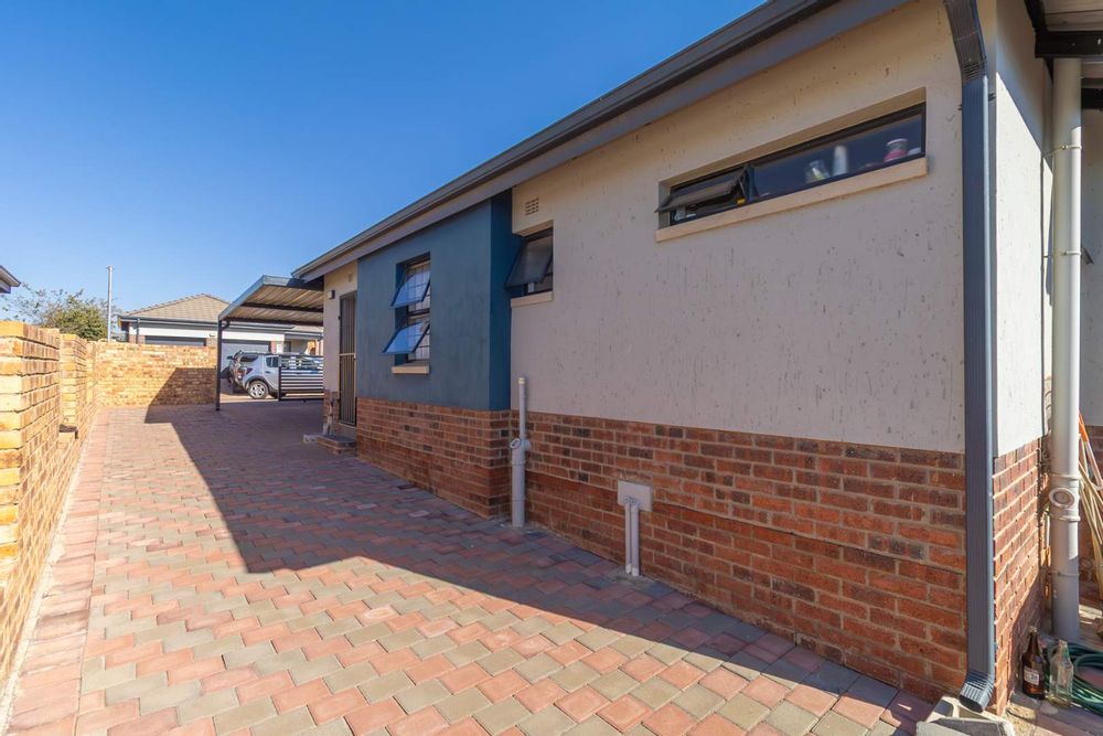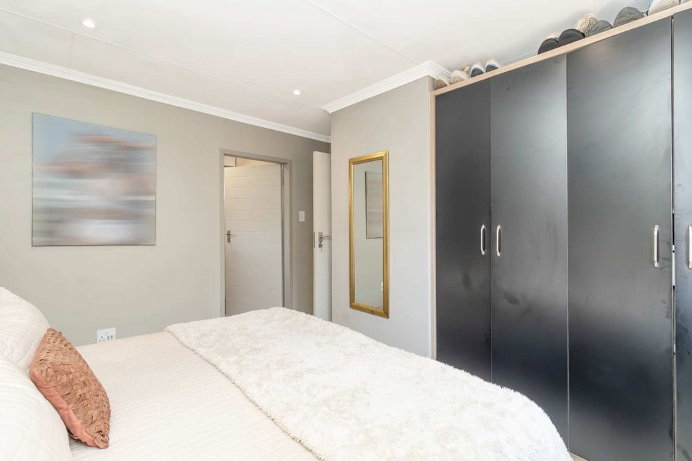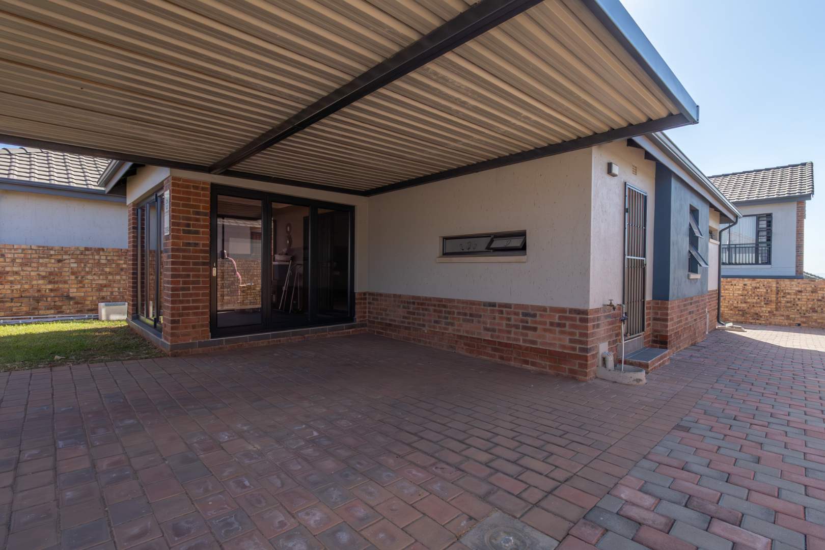 The house boasts three well-appointed bedrooms, each designed with comfort in mind. The main bedroom features an ensuite bathroom, offering added privacy and luxury. The additional two bedrooms share a sleek, modern bathroom equipped with a toilet and tub, ensuring convenience for family members or guests. Enhancing the home’s efficiency is a solar geyser, contributing to both energy savings and environmental sustainability.