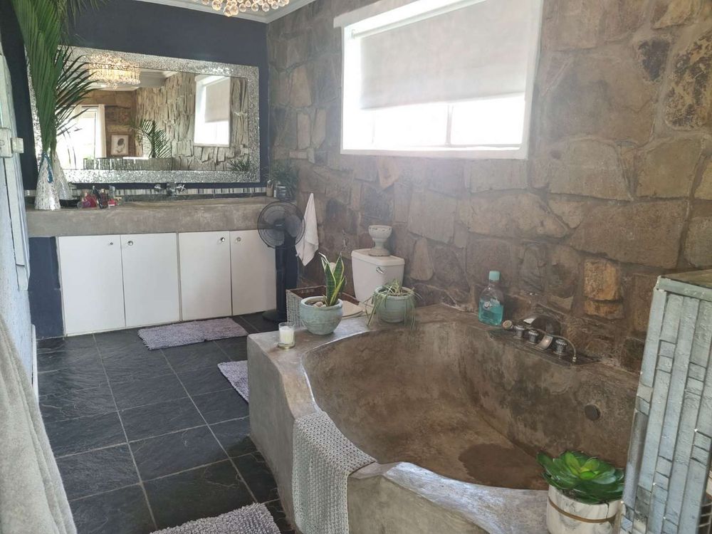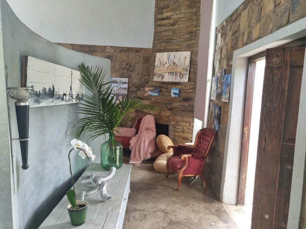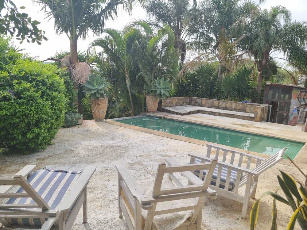 lounge ( in need of finishing touches) & deck overlooking scenic views, well proportioned kitchen, scullery & laundry,4 spacious bedrooms,4 bathrooms, covered entertainment area with built in braai & overlooking sparkling swimming pool, 2 flatlets,storeroom,2x double garage, secure open parking for 6 + cars, Avery for birds, manicured garden,courtyard,3x tanks, security & access gates .