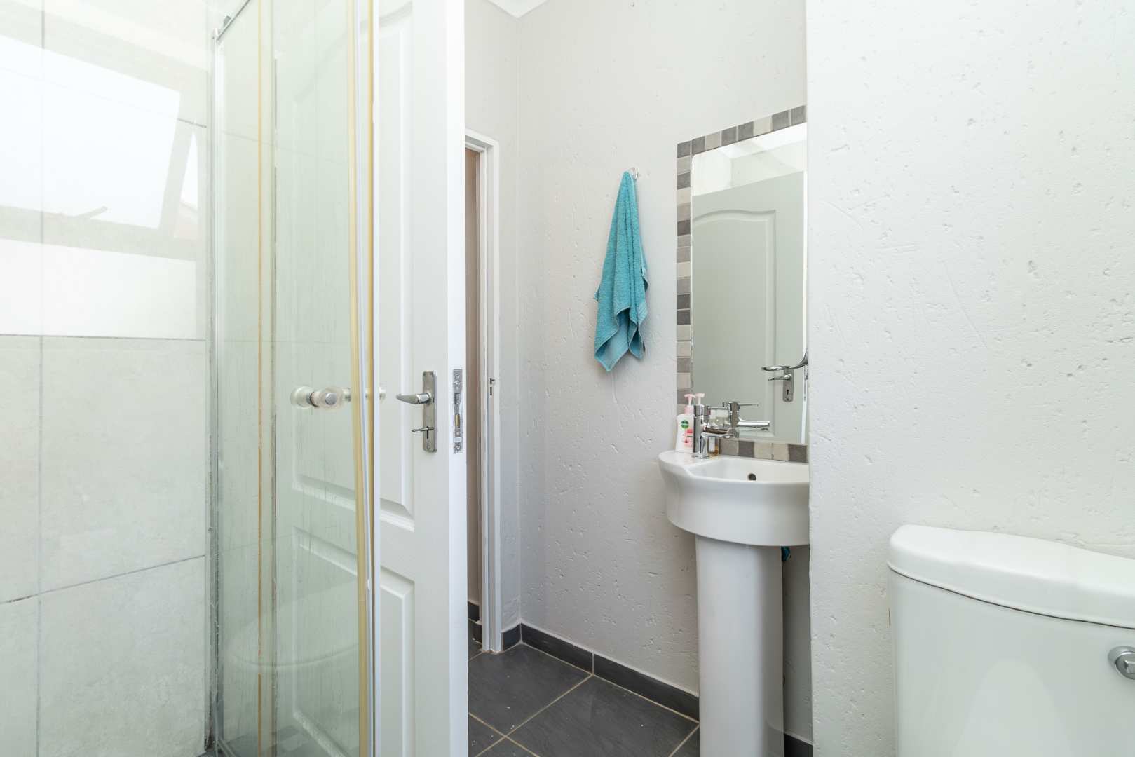 Convenience is key with a guest toilet situated downstairs. Ascend the staircase to find two generously-sized bedrooms, each designed with comfort in mind. The main bedroom features an en-suite bathroom and a private balcony, perfect for enjoying fresh air and tranquil moments.