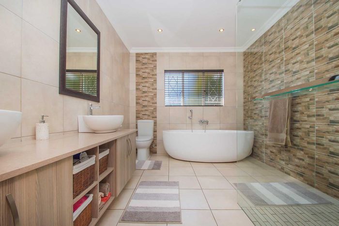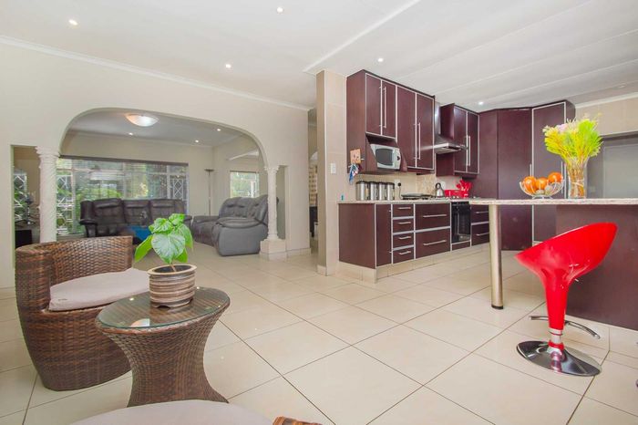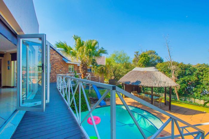 Relaxing family oasis in a tranquil panhandle setting, perfect for effortless entertaining — balcony overlooks pool and thatched lapa, modern kitchen, three bedrooms, three baths and double garage.
