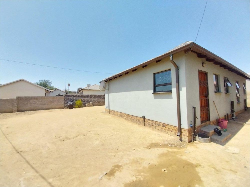 Step inside to experience modern elegance with quality finishes throughout. This home boasts a waterproof insulated Tuscan roof, a solar geyser for energy efficiency, and fully tiled interiors. Relax in the spacious lounge, cook in a well-appointed kitchen with ample storage, and unwind in three generously sized bedrooms with built-in cupboards. The main bedroom features an en-suite bathroom, complemented by a second bathroom for guests.