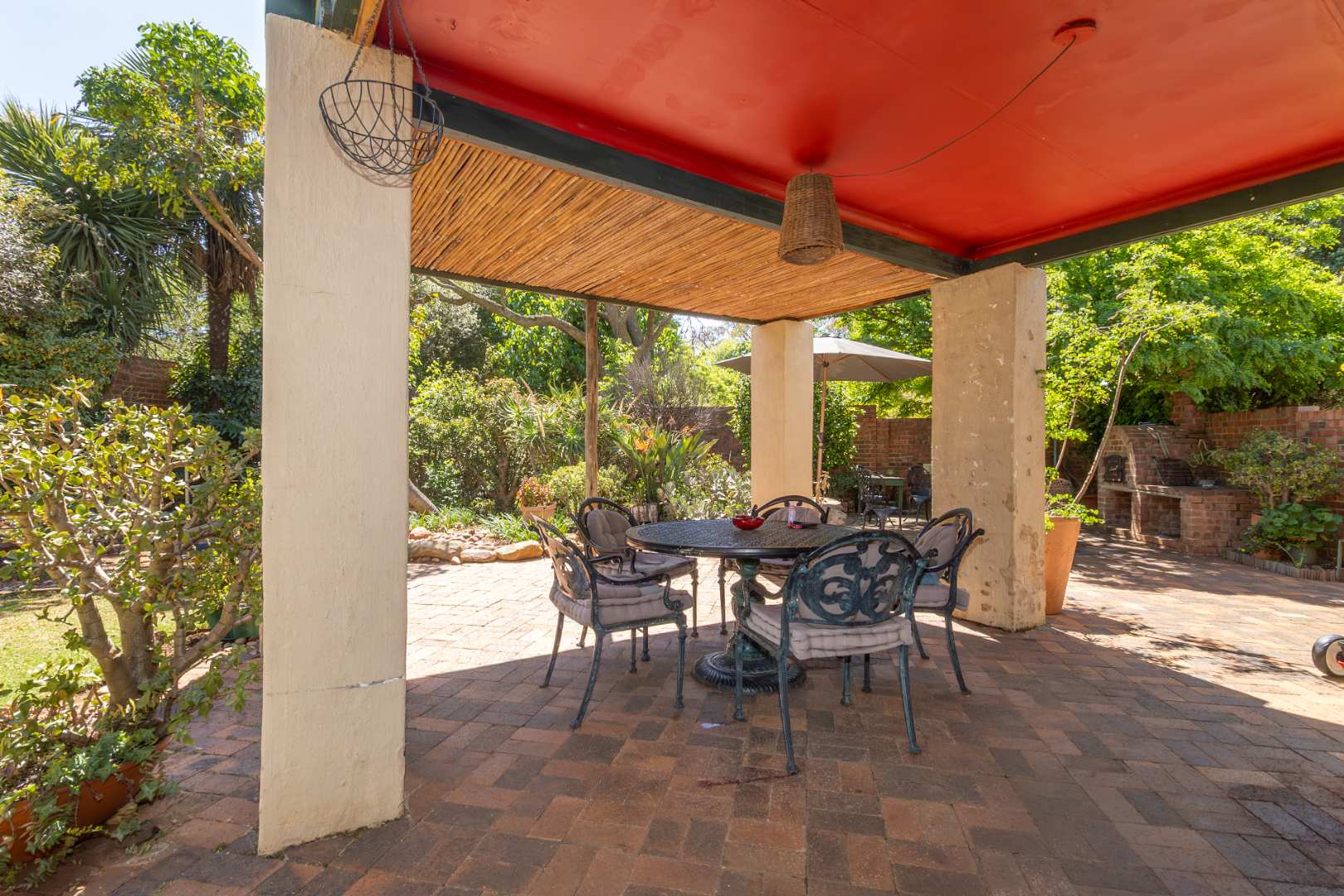 Outdoor living is well catered for with a sizable, covered patio and braai area, perfect for entertaining or enjoying quiet family gatherings. The property also includes domestic quarters with a bedroom, bathroom, and kitchen, ensuring comfort and privacy for live-in help.