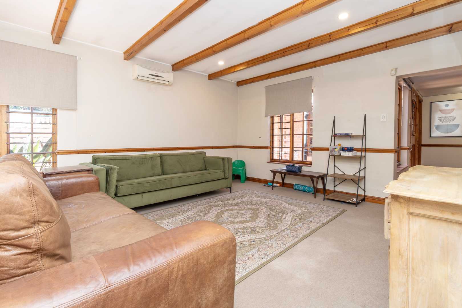 Welcome to your new home, a remarkably spacious and sun-drenched residence perfect for your family. This property offers an abundance of living space with two impressive lounge areas, boasting high ceilings and large windows that flood the rooms with natural light. One lounge features a cozy fireplace, while the other is air-conditioned for your comfort. The lounges seamlessly connect to the inviting entryway and lead to a separate dining room, offering ample space for a dining table and sideboards.
