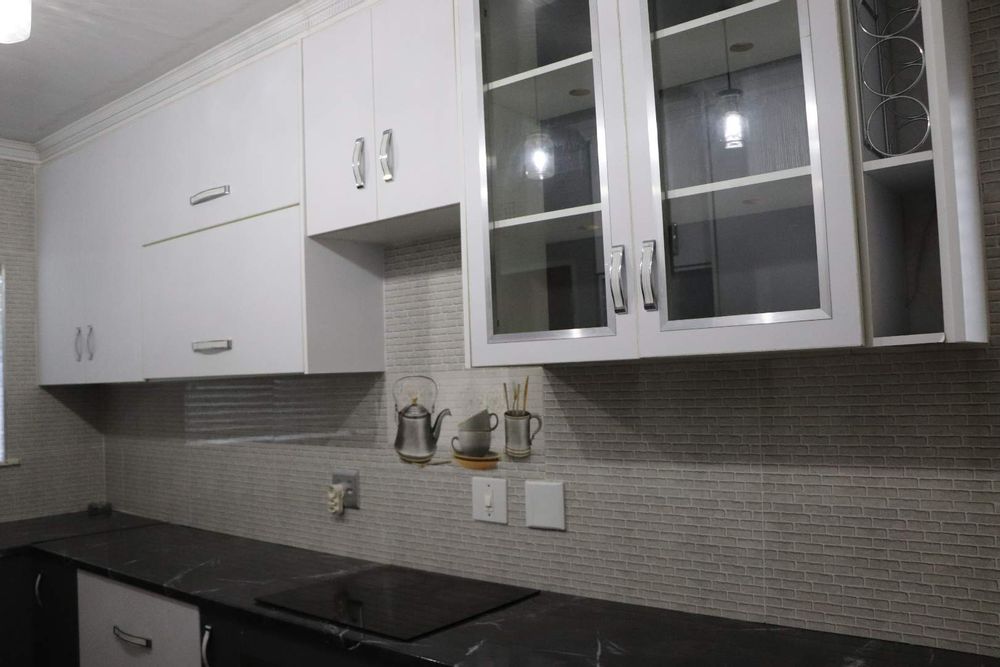 This home offers 3 laminated beds 2 baths( MES) 2 receptions,newly renovated kitchen, separate laundry, double garage,pool and outside toilet. Electricity is prepaid . Electrical fencing and a borehole with a purified water system. Plus a 5 x 8 Sqm outside building with a full bathroom, and a 4 x 4 sqm Wendy house. Close to Westgate Mall and other amenities.