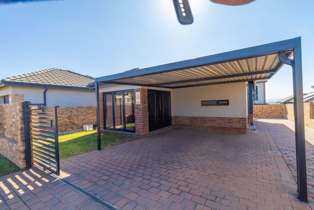 The home features three beautifully appointed bedrooms. The main bedroom boasts an ensuite bathroom, providing added privacy and comfort. The other two bedrooms share a sleek, modern bathroom equipped with a toilet and tub, offering convenience for family members or guests. Additionally, the house is fitted with a solar geyser, promoting energy efficiency and cost savings.