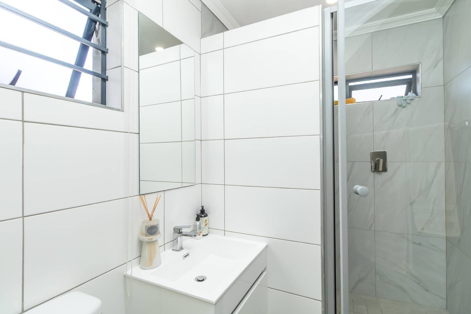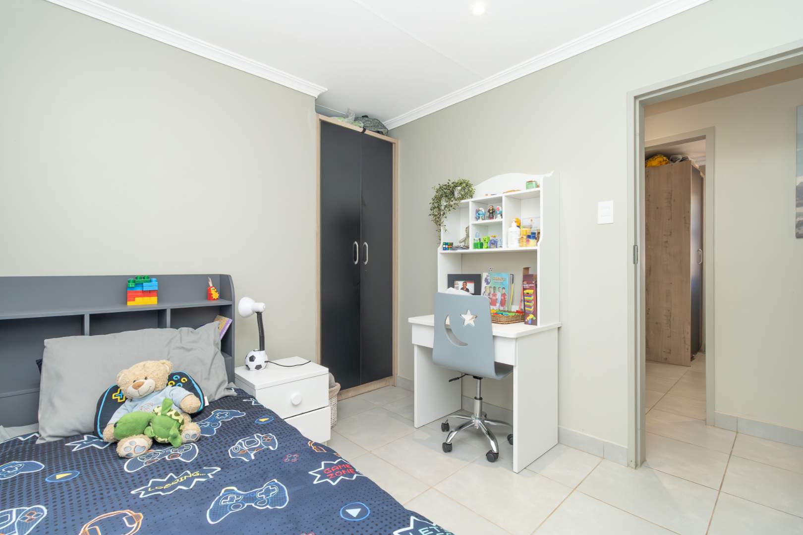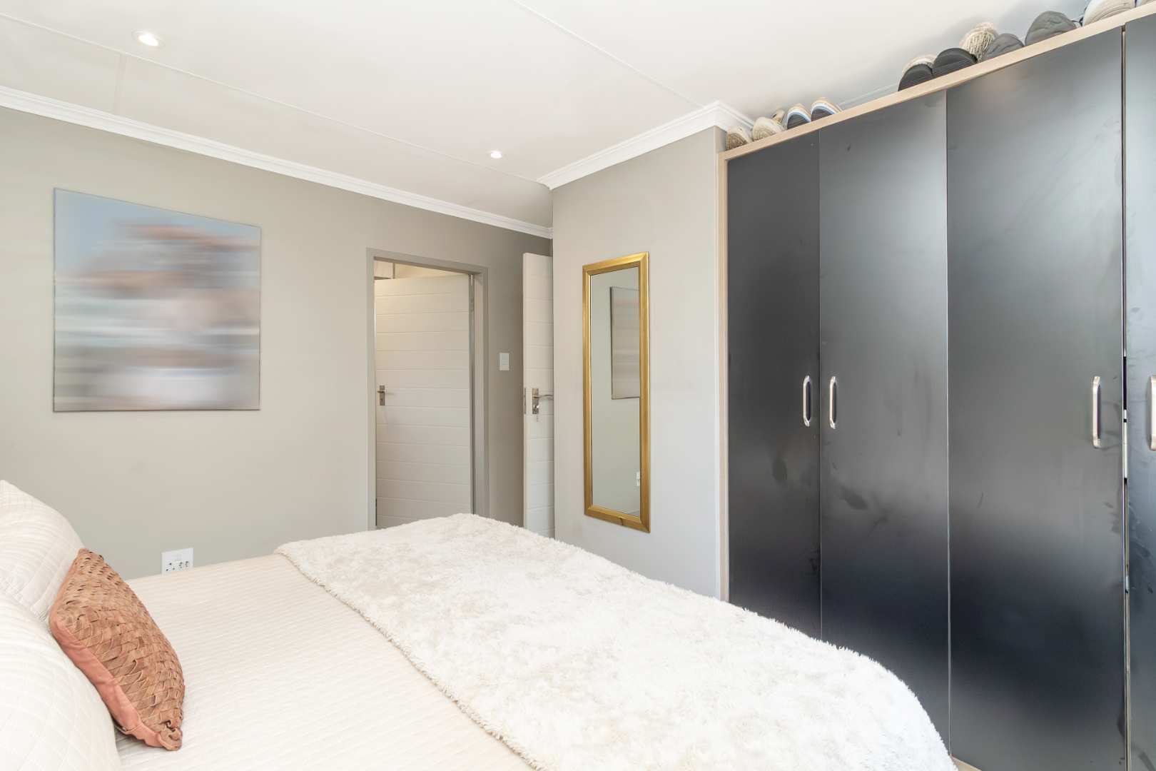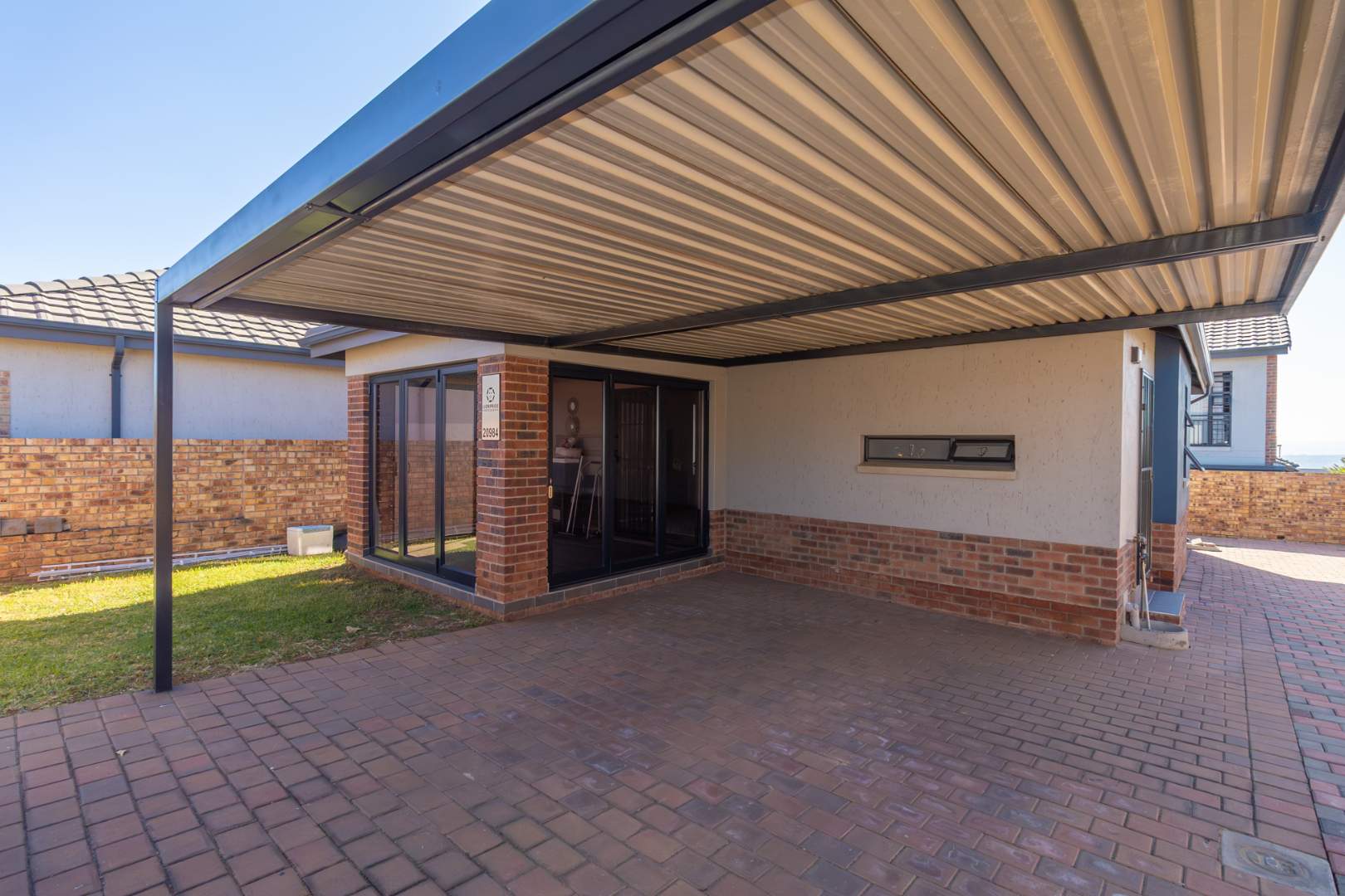 The home features three beautifully appointed bedrooms. The main bedroom boasts an ensuite bathroom, providing added privacy and comfort. The other two bedrooms share a sleek, modern bathroom equipped with a toilet and tub, offering convenience for family members or guests. Additionally, the house is fitted with a solar geyser, promoting energy efficiency and cost savings.