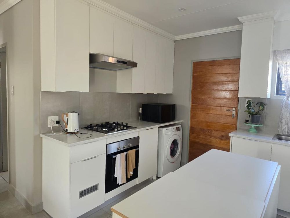 Step inside to discover a spacious open-plan kitchen that seamlessly flows into the inviting lounge area, creating an ideal setting for entertaining guests or enjoying family time. The kitchen is equipped with a gas stove, catering to the needs of culinary enthusiasts.