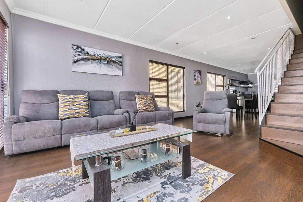 This secure double-story townhouse is situated in a prime location and offers a stylish, low-maintenance lifestyle. It features two bedrooms, each with its own bathroom, plus a guest bathroom. The open-plan kitchen flows seamlessly into the spacious dining and lounge area, creating a warm and inviting atmosphere ideal for relaxed living and entertaining.