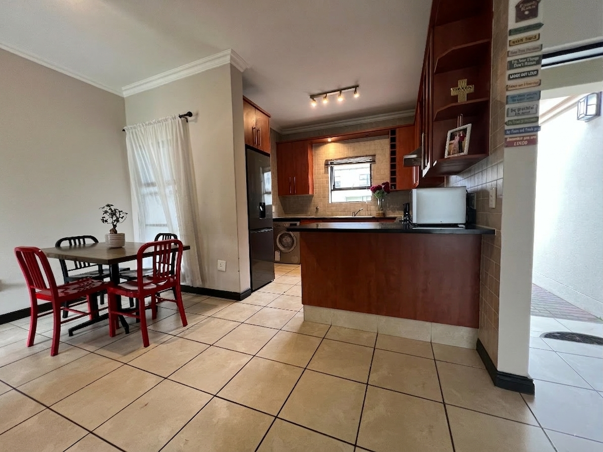 The cherrywood kitchen is complimented with black Rustenburg granite for ease of living and supported with ample cupboards.