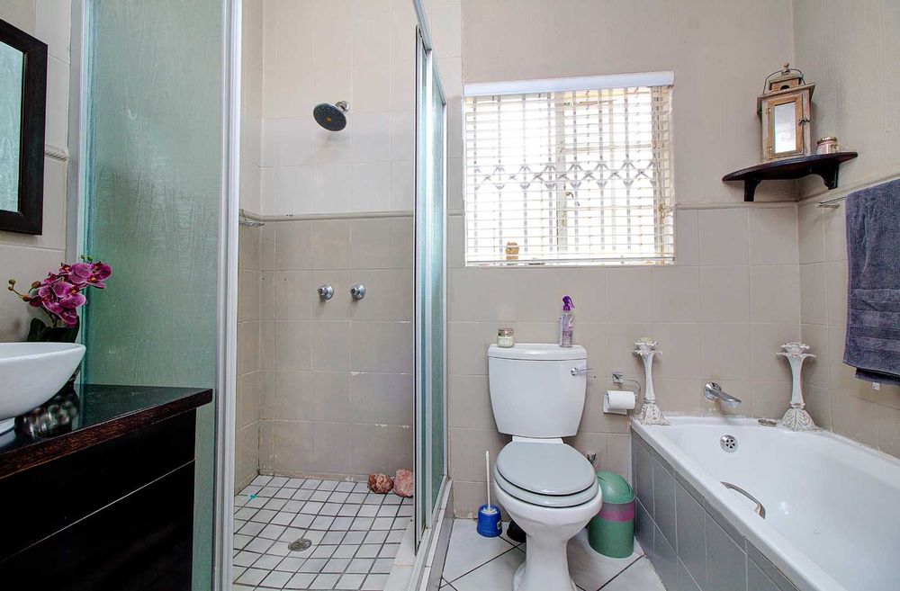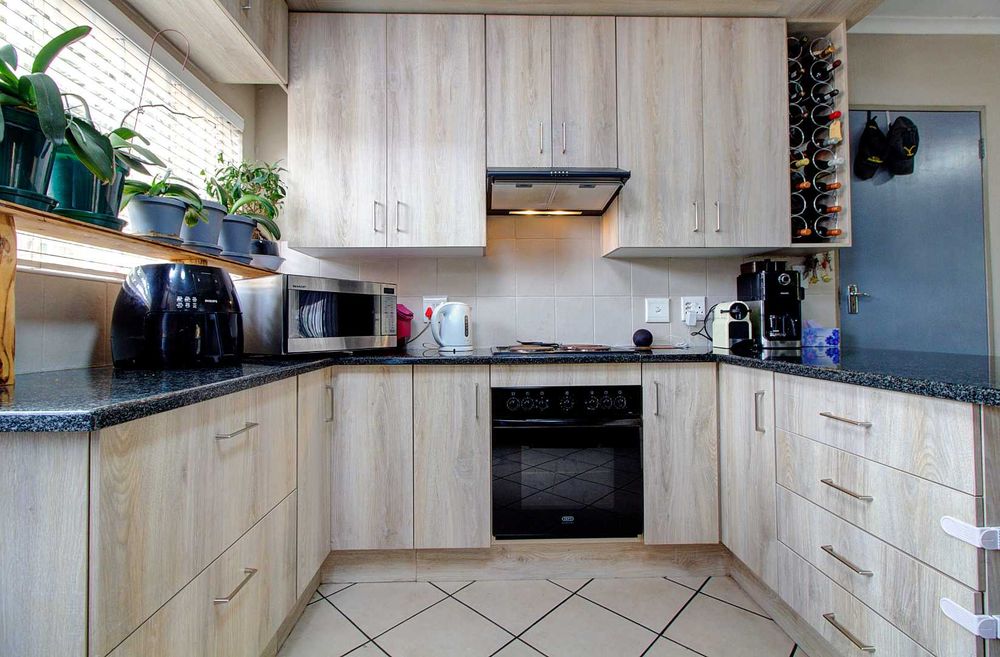 The townhouse includes three well-appointed bedrooms, each with built-in cupboards. The main bedroom offers an en-suite bathroom for added privacy and convenience. Additionally, two modern bathrooms are available to accommodate family and guests.