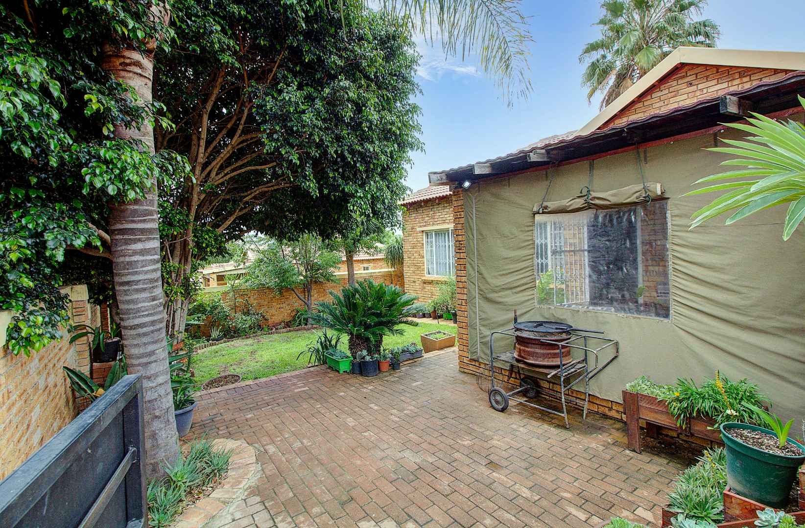Host gatherings in style on the charming covered patio, an inviting space perfect for entertaining family and friends. This delightful area overlooks a pet-friendly garden, providing a wonderful setting for relaxation and play.