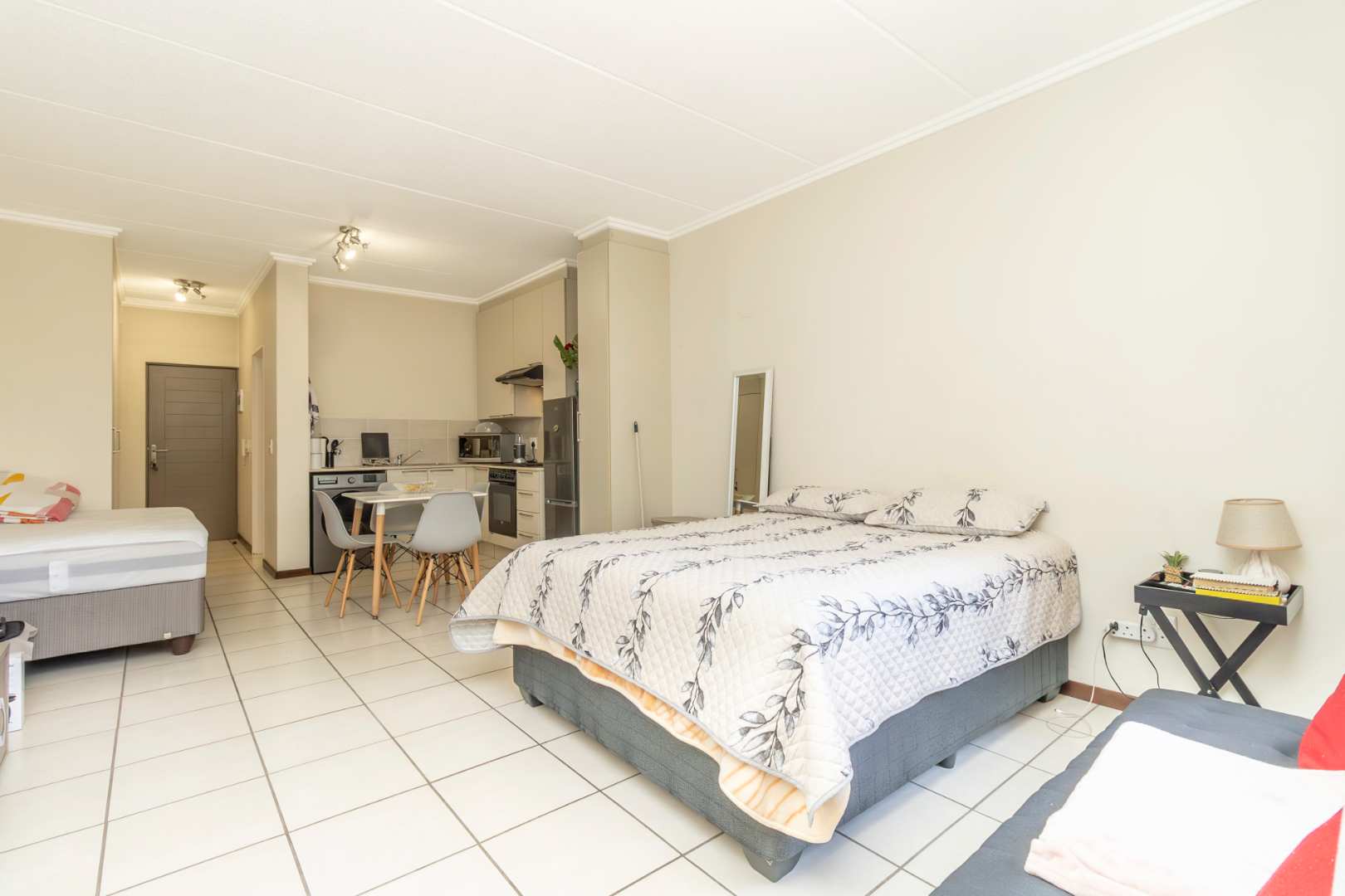 Effortless urban living for professionals, minutes from Fourways and Bryanston, with 24/7 security and private balcony — studio bachelor’s flat with shower bathroom.