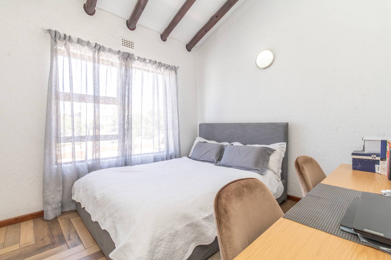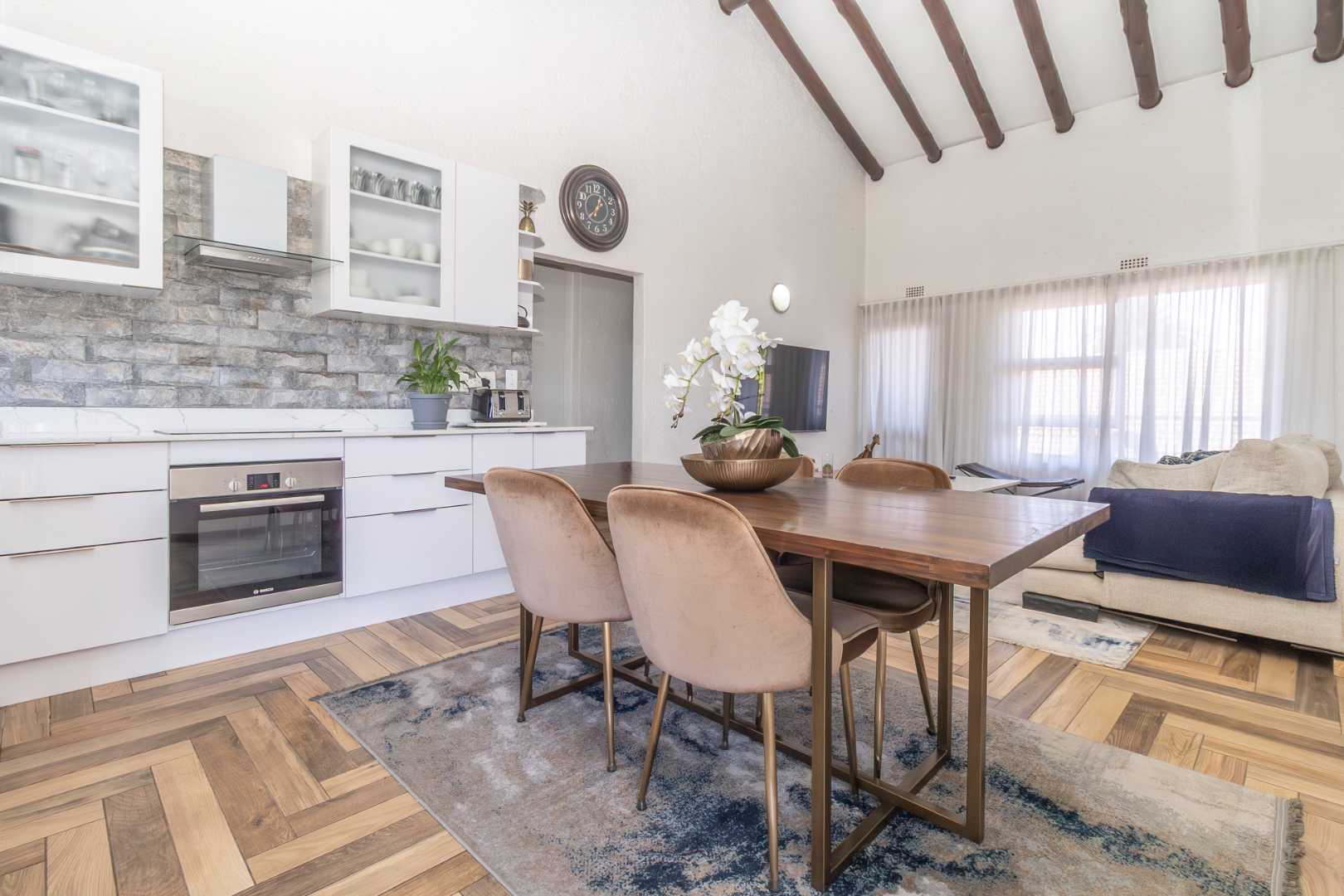 Welcome to this stylish apartment featuring high ceilings, two bedrooms, and a beautifully designed bathroom, nestled in a secure complex in the heart of Paulshof. This modern residence offers a perfect blend of comfort and convenience, making it an ideal home for discerning individuals.