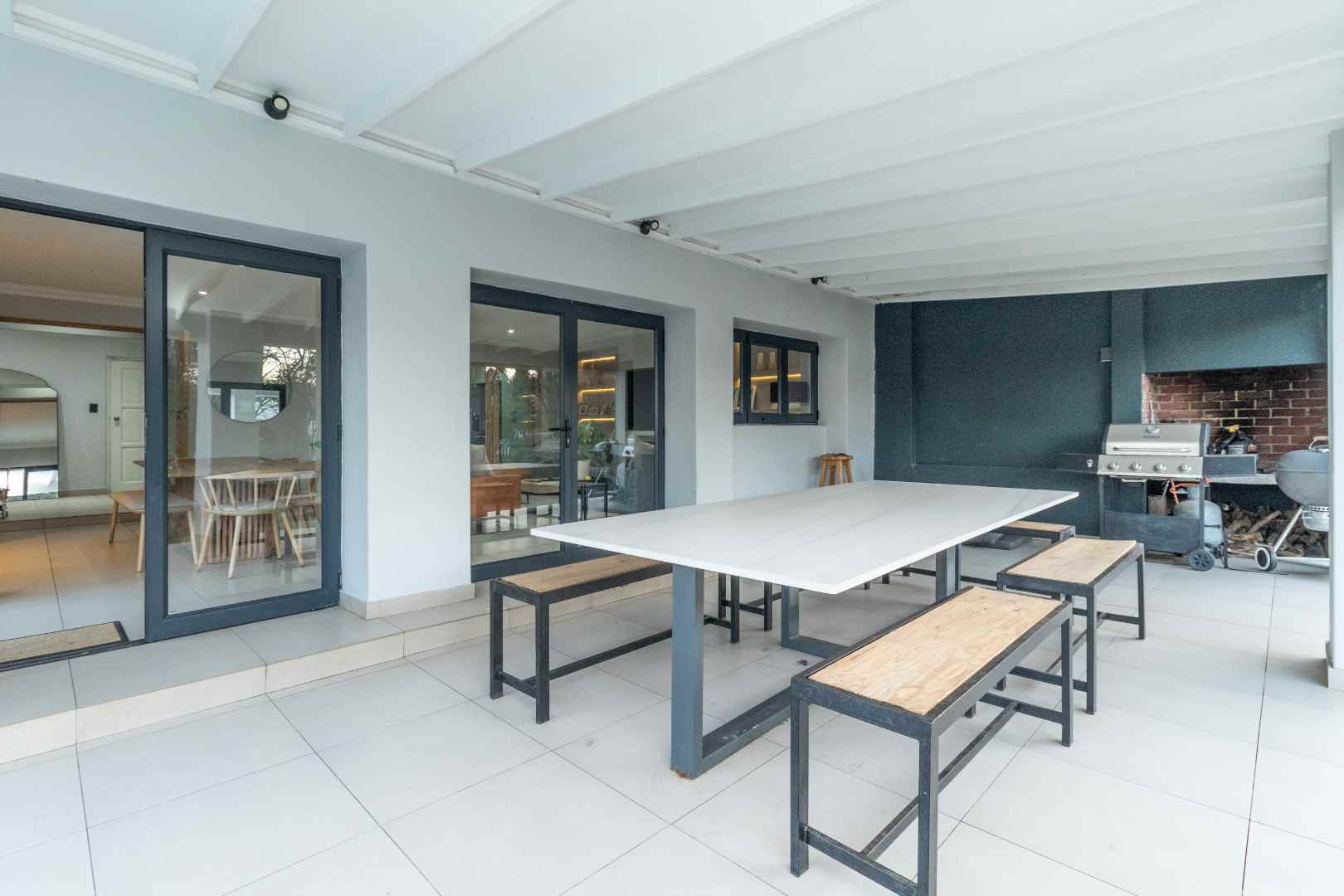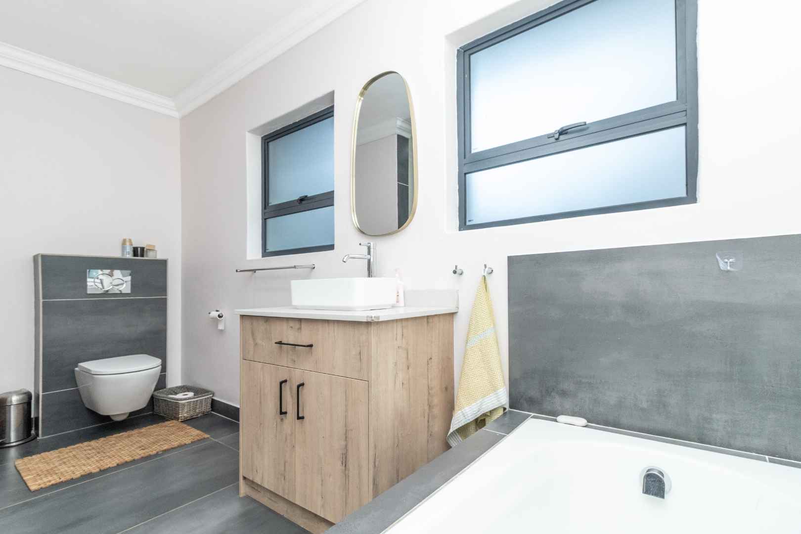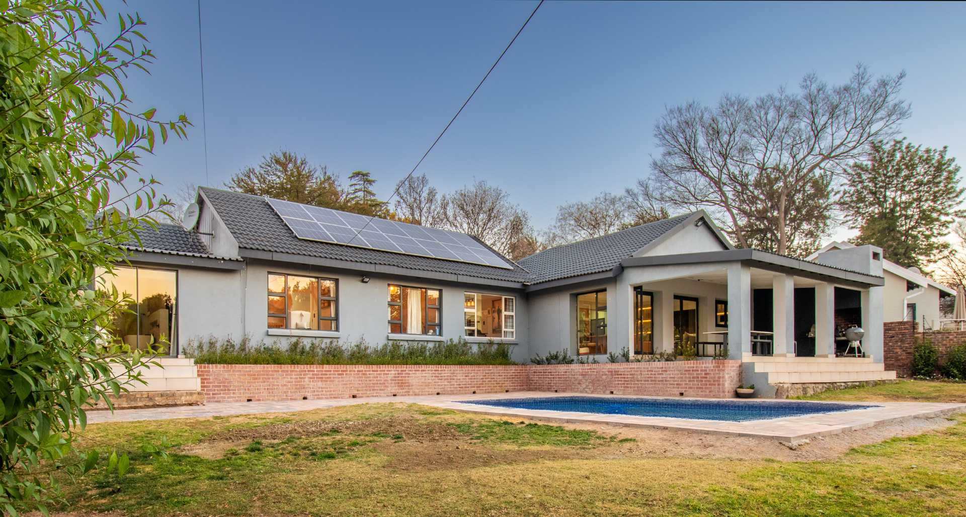 This house had basically everything upgraded. House have new flooring. Bathrooms new floors, tiling, shower and bath finishes. All cupboard doors are new, vanities are new. Kitchen appliances and finishes new. The house is freshly painted inside and outside. Perimeter walls redone, new front gate. Roof redone. Outside patio was built on with Swartland window frames and stacking doors. Pool was redone with new paving all around. The lawn and new plants just need time to grow and get green. Extra new gardens were made around the pool as well.
